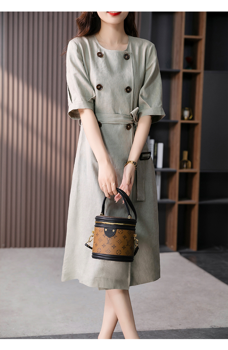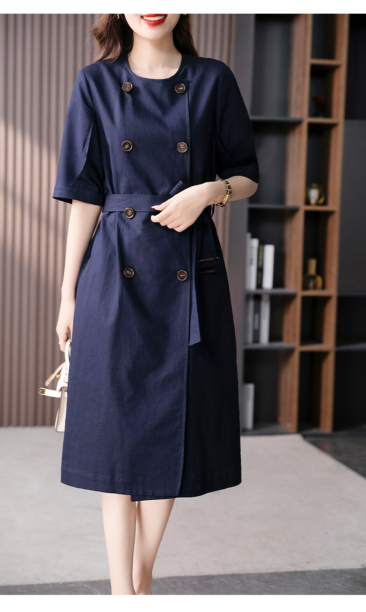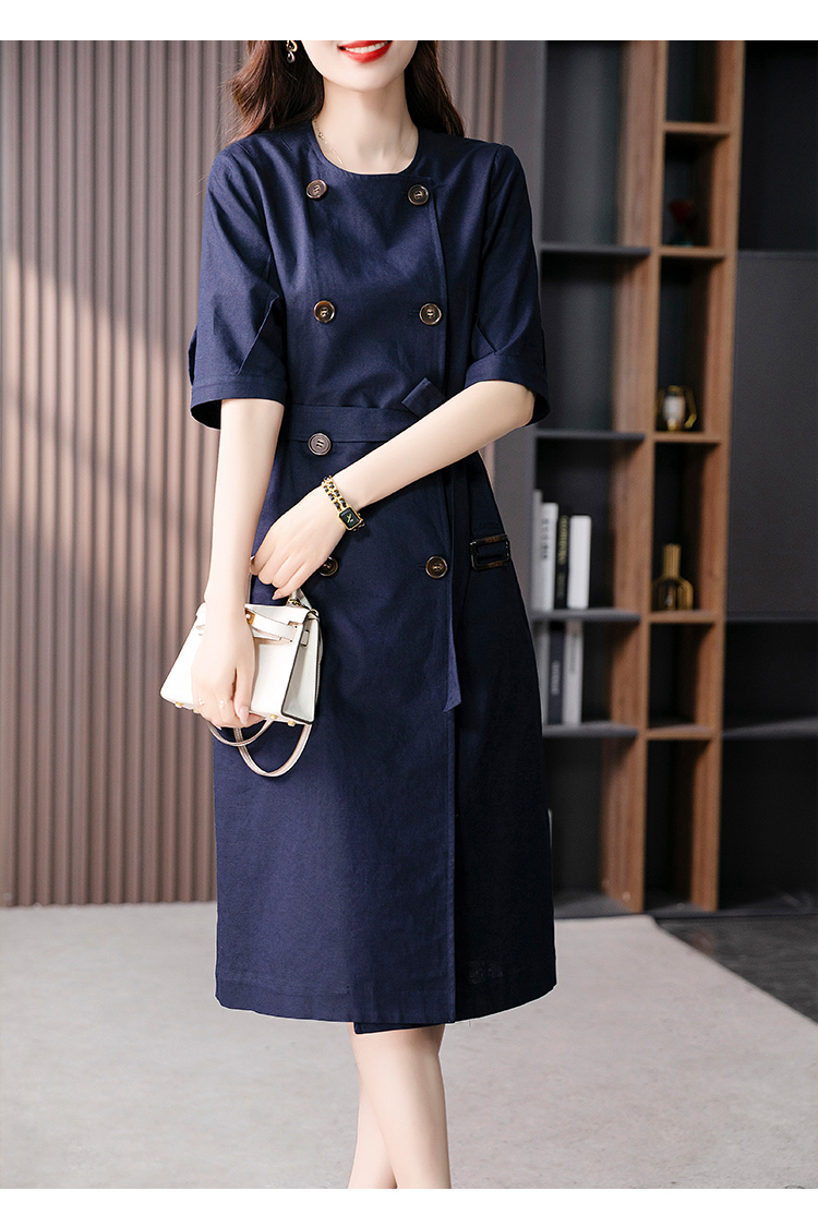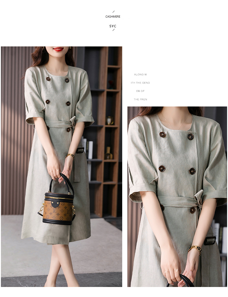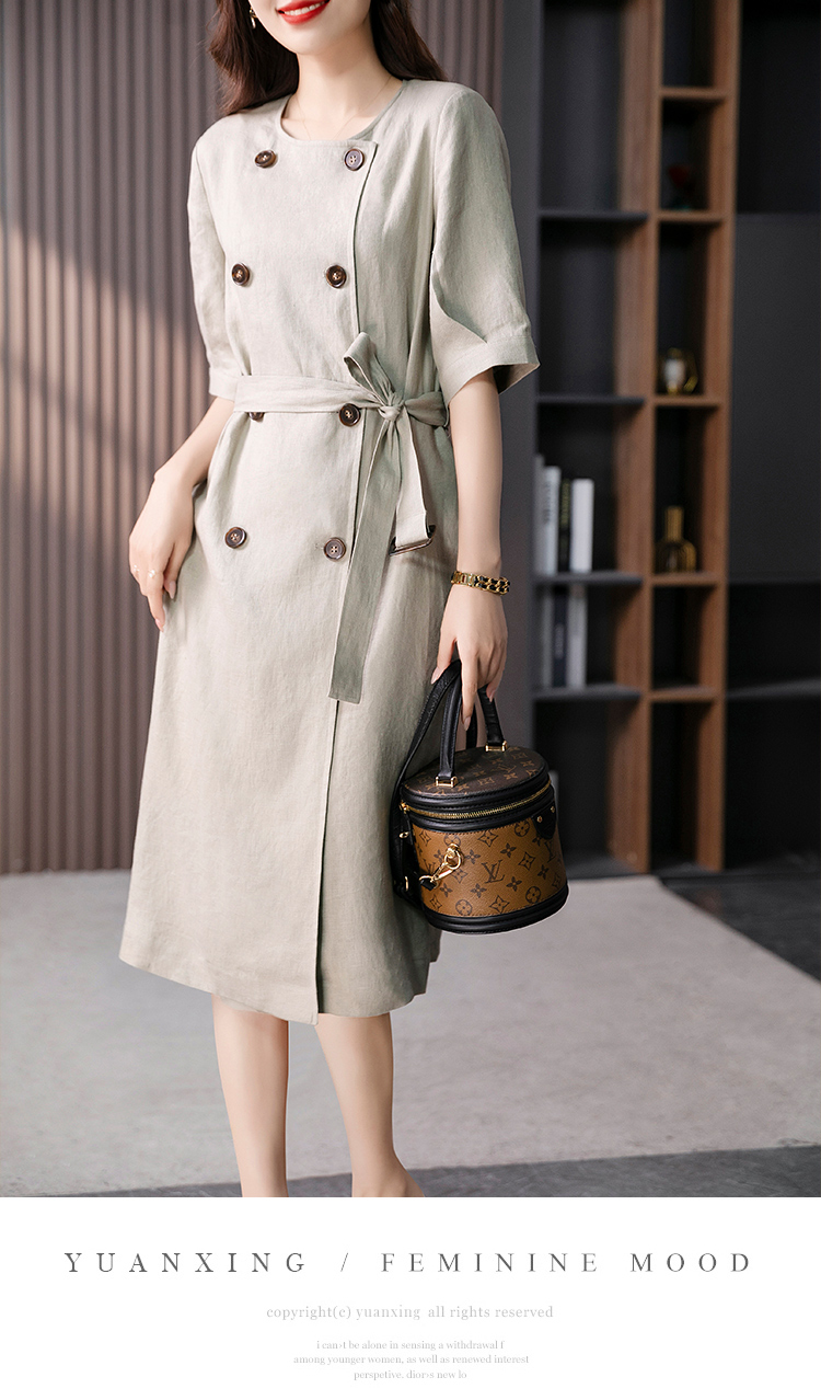 89049原形英伦风设计感双排扣连衣裙女夏2024新款韩版法式收腰茶歇裙