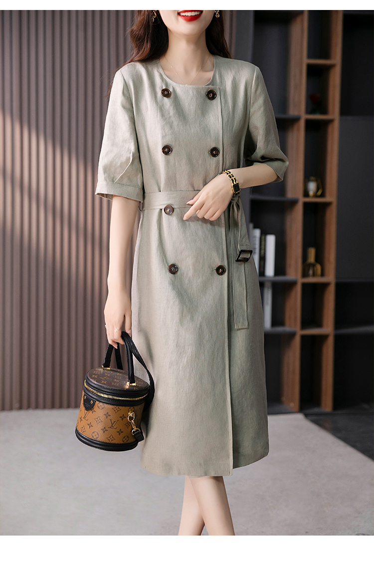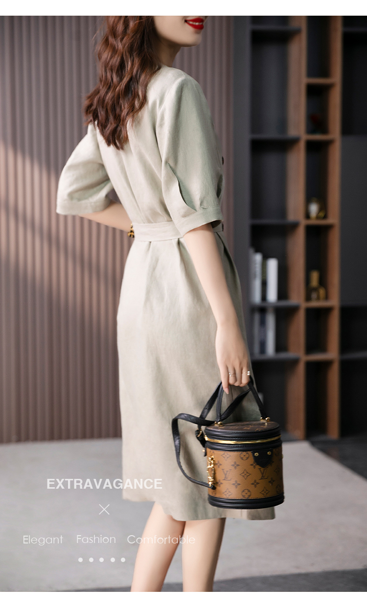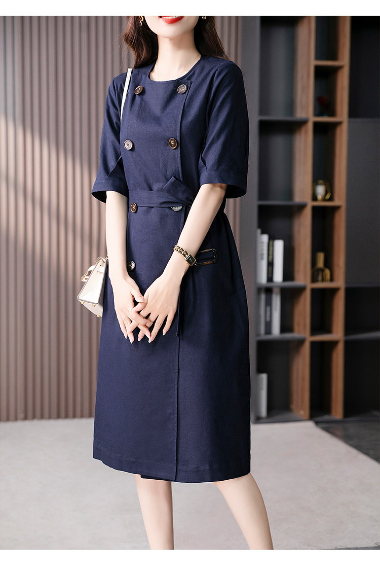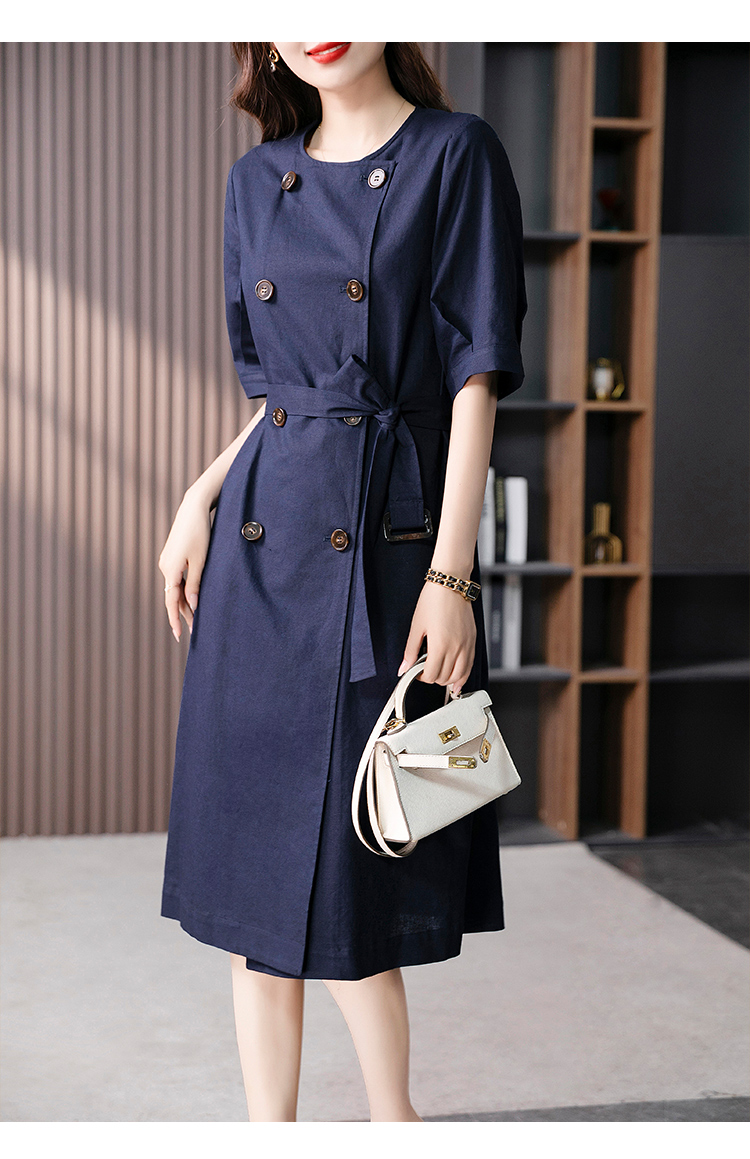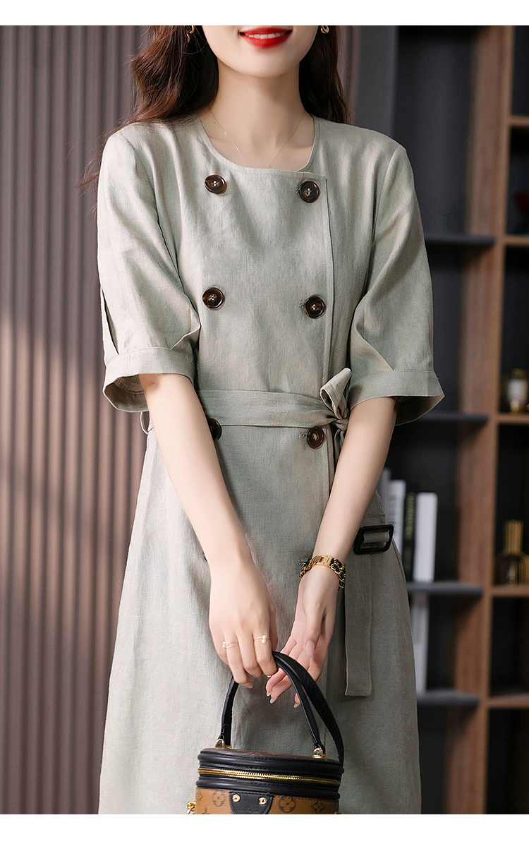89049原形英伦风设计感双排扣连衣裙女夏2024新款韩版法式收腰茶歇裙