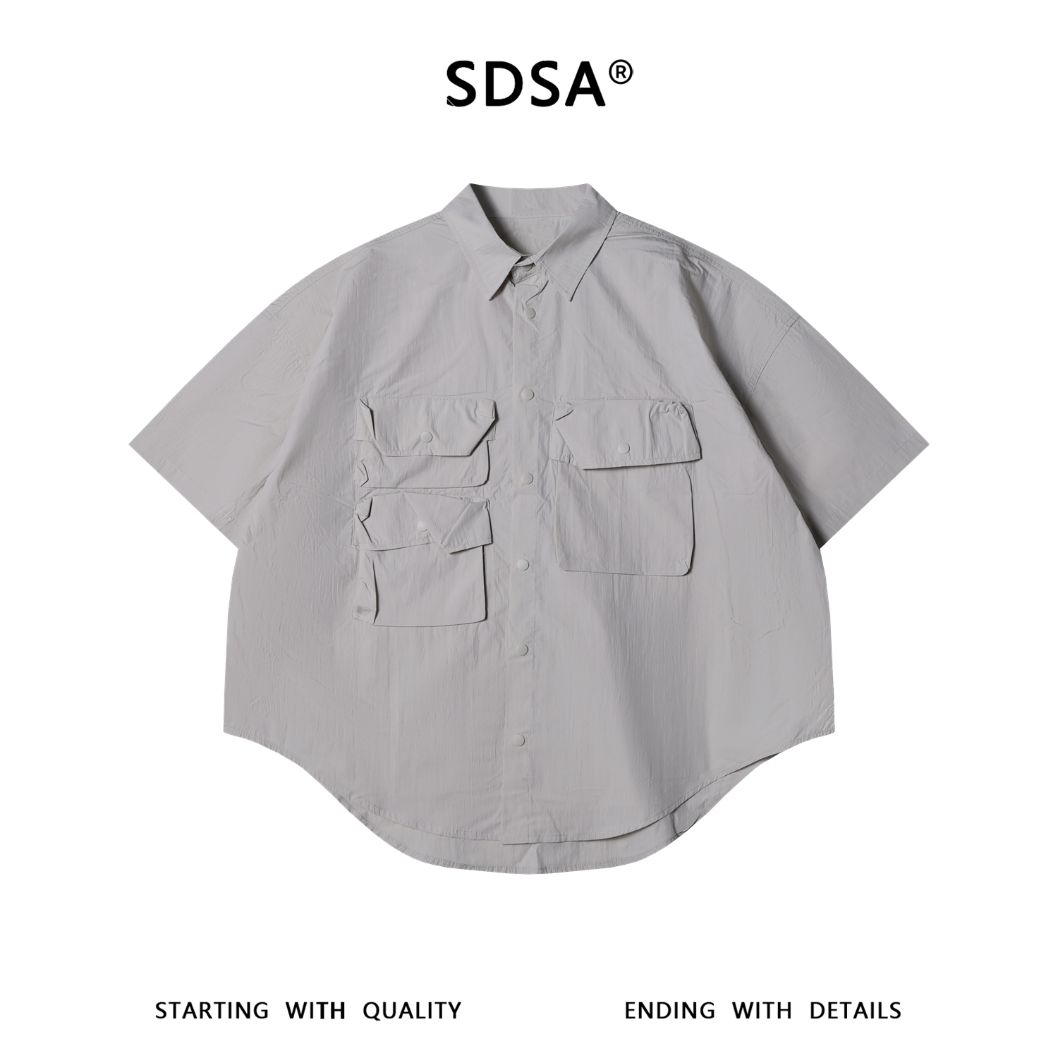 SDSA男装2026新款高贵轻奢复古工装立体多口袋弧形下摆短袖衬衫