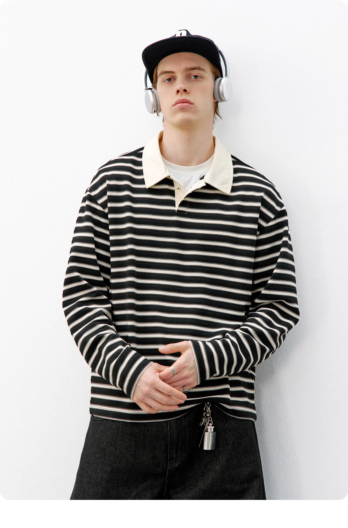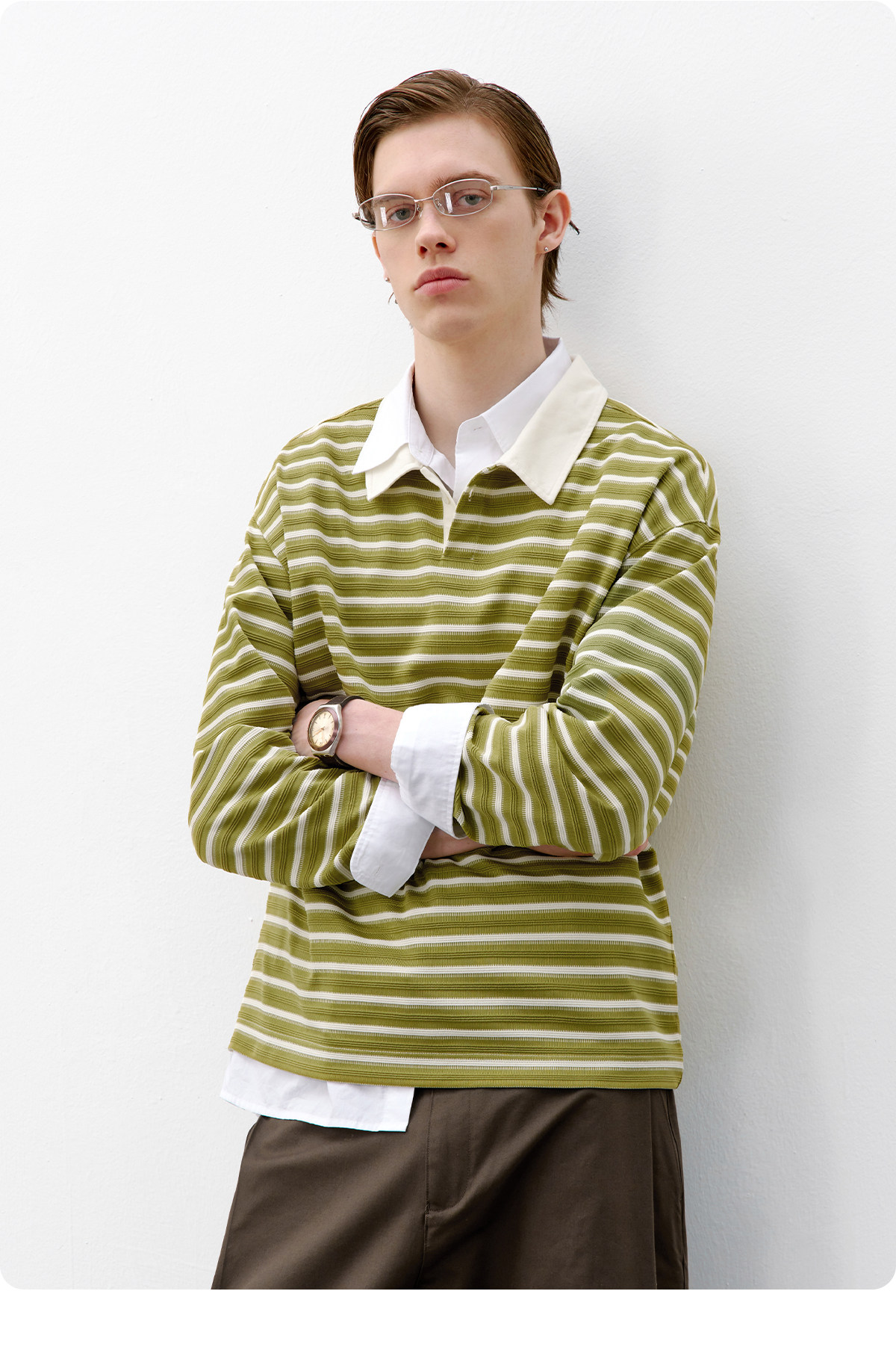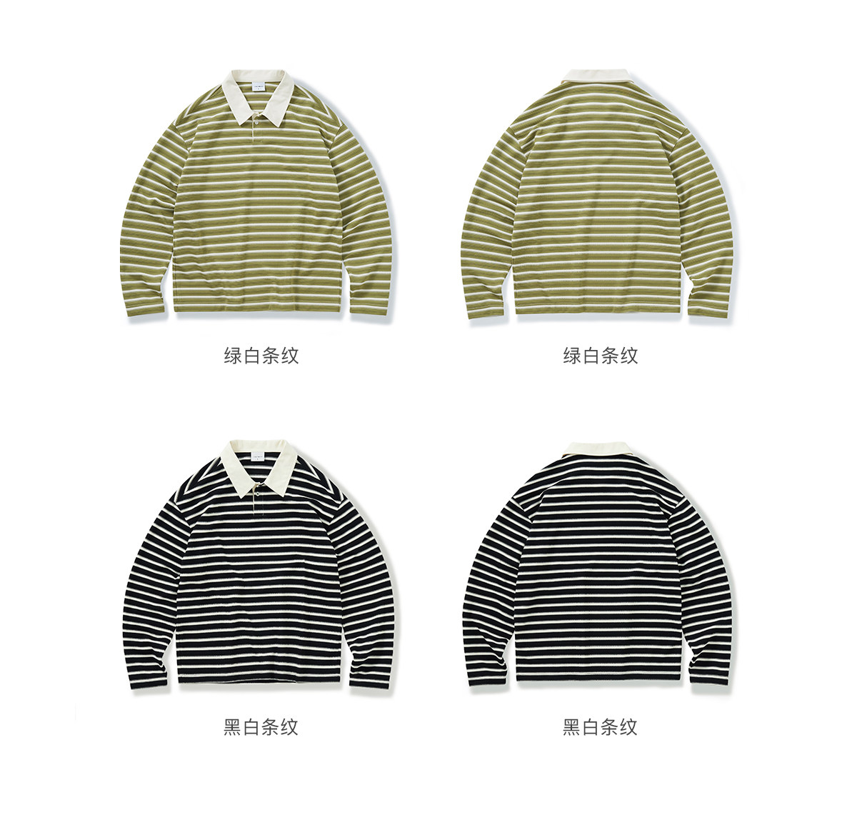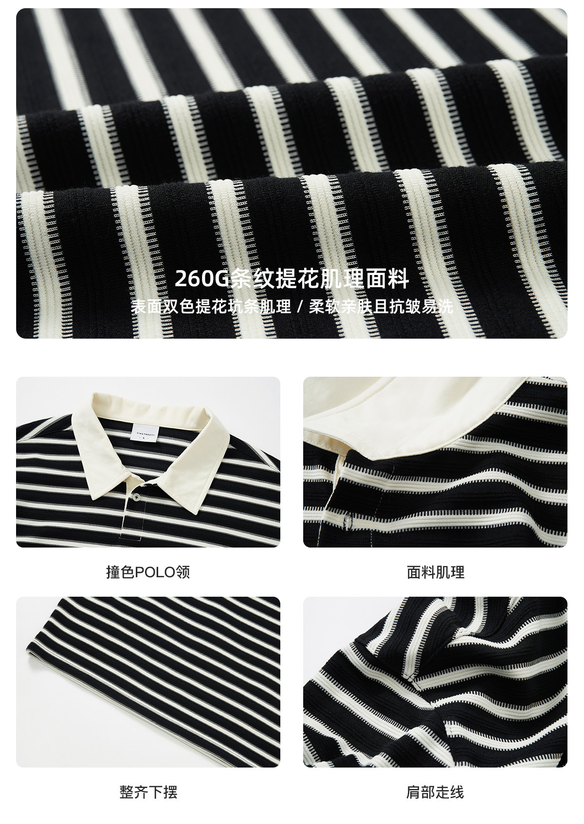 714street条纹提花肌感针织长袖T恤男2026春季复古Polo衫上衣女