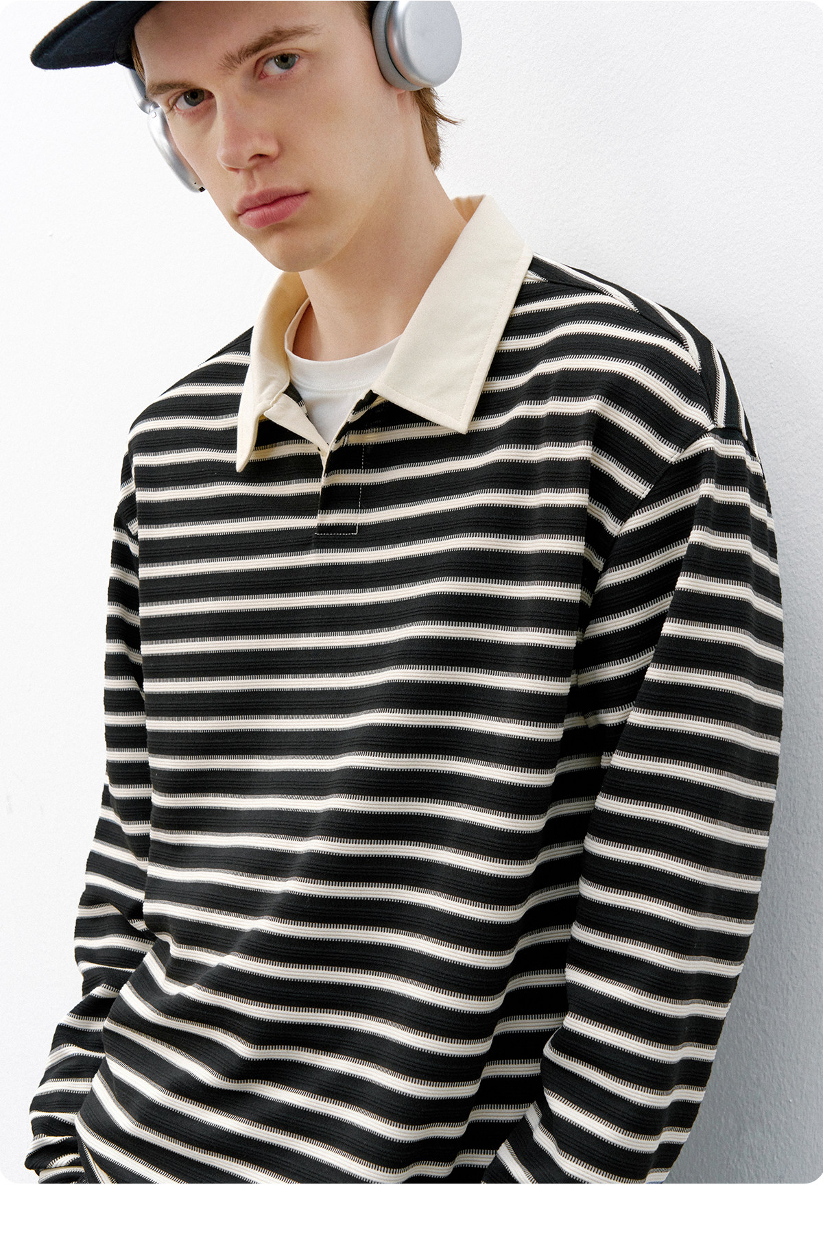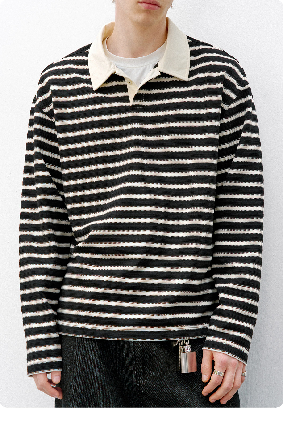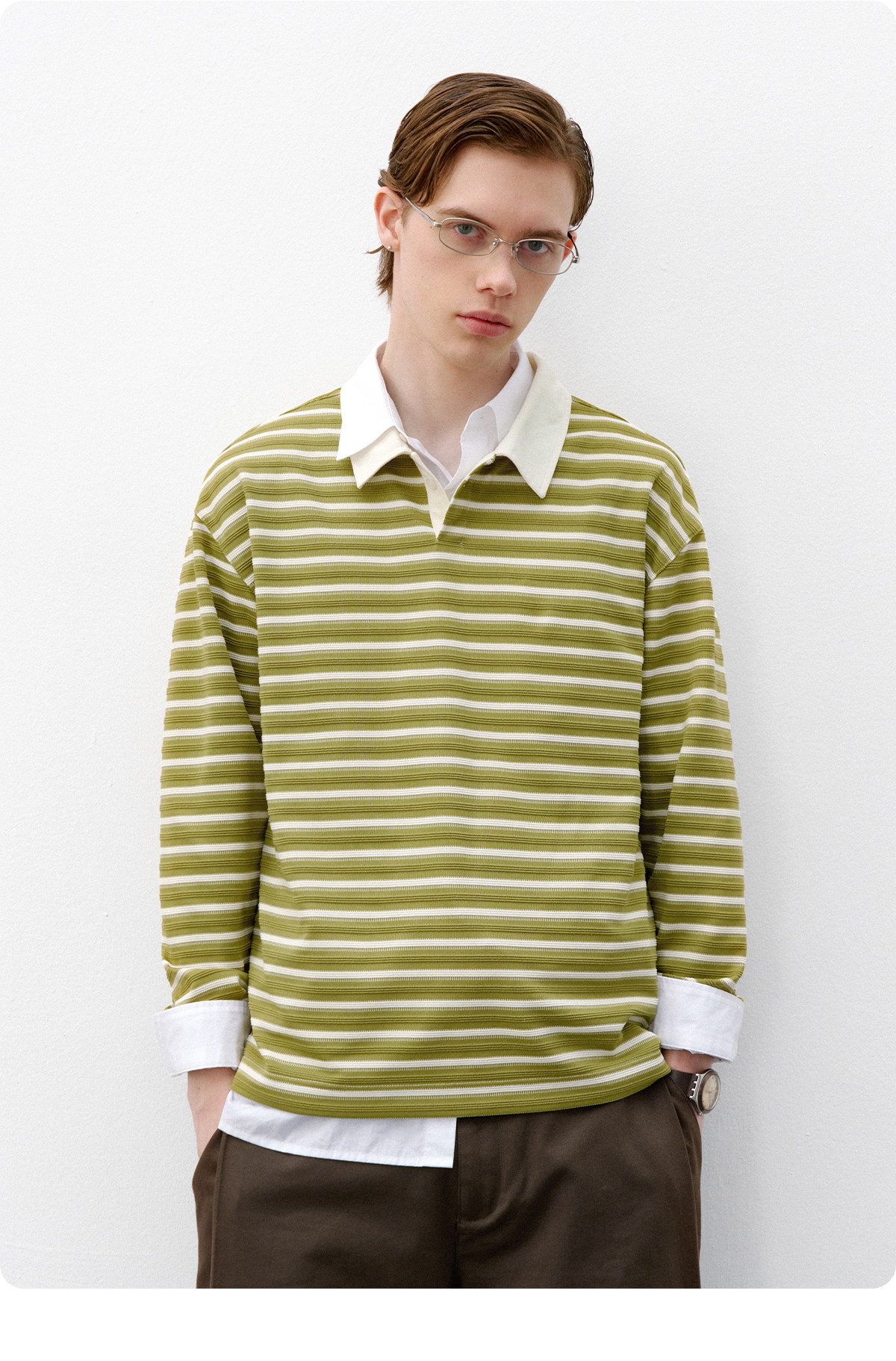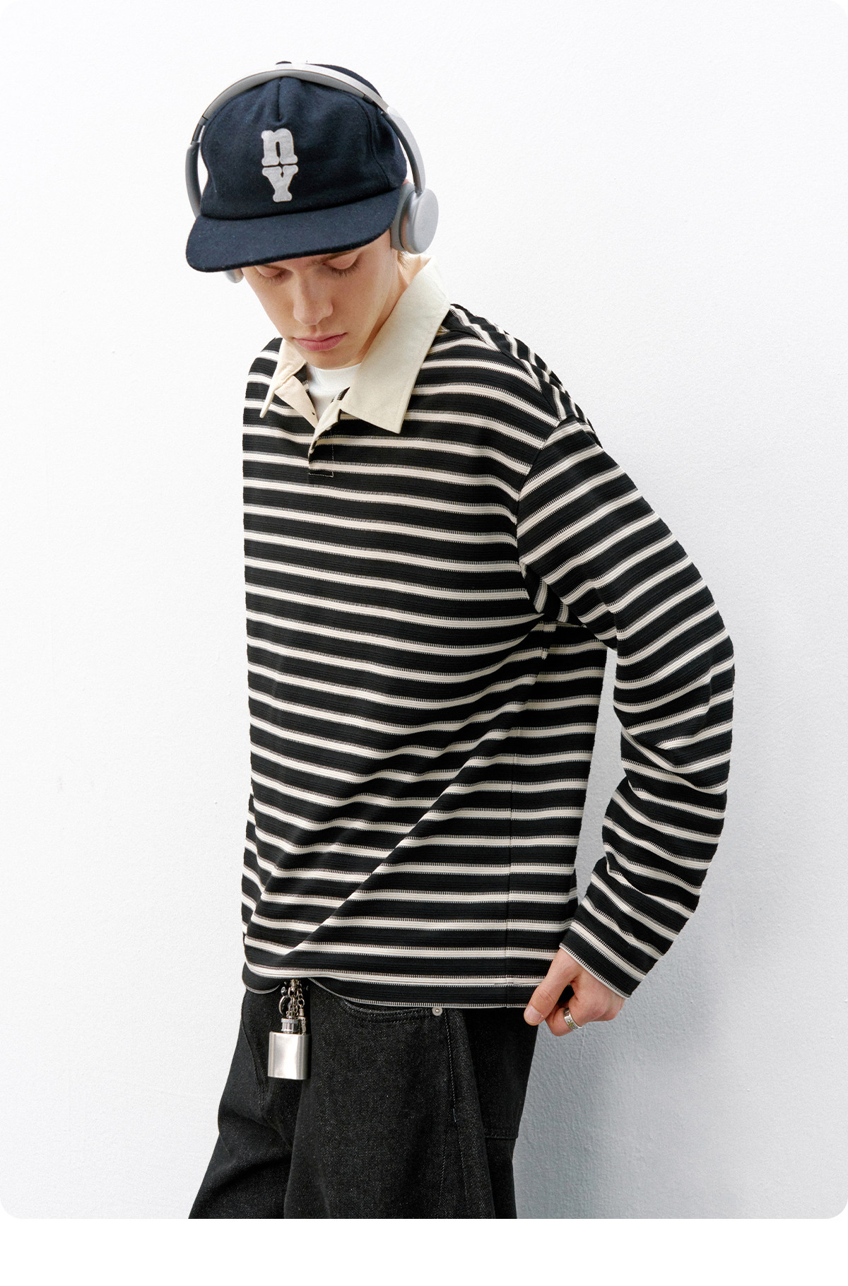 714street条纹提花肌感针织长袖T恤男2026春季复古Polo衫上衣女