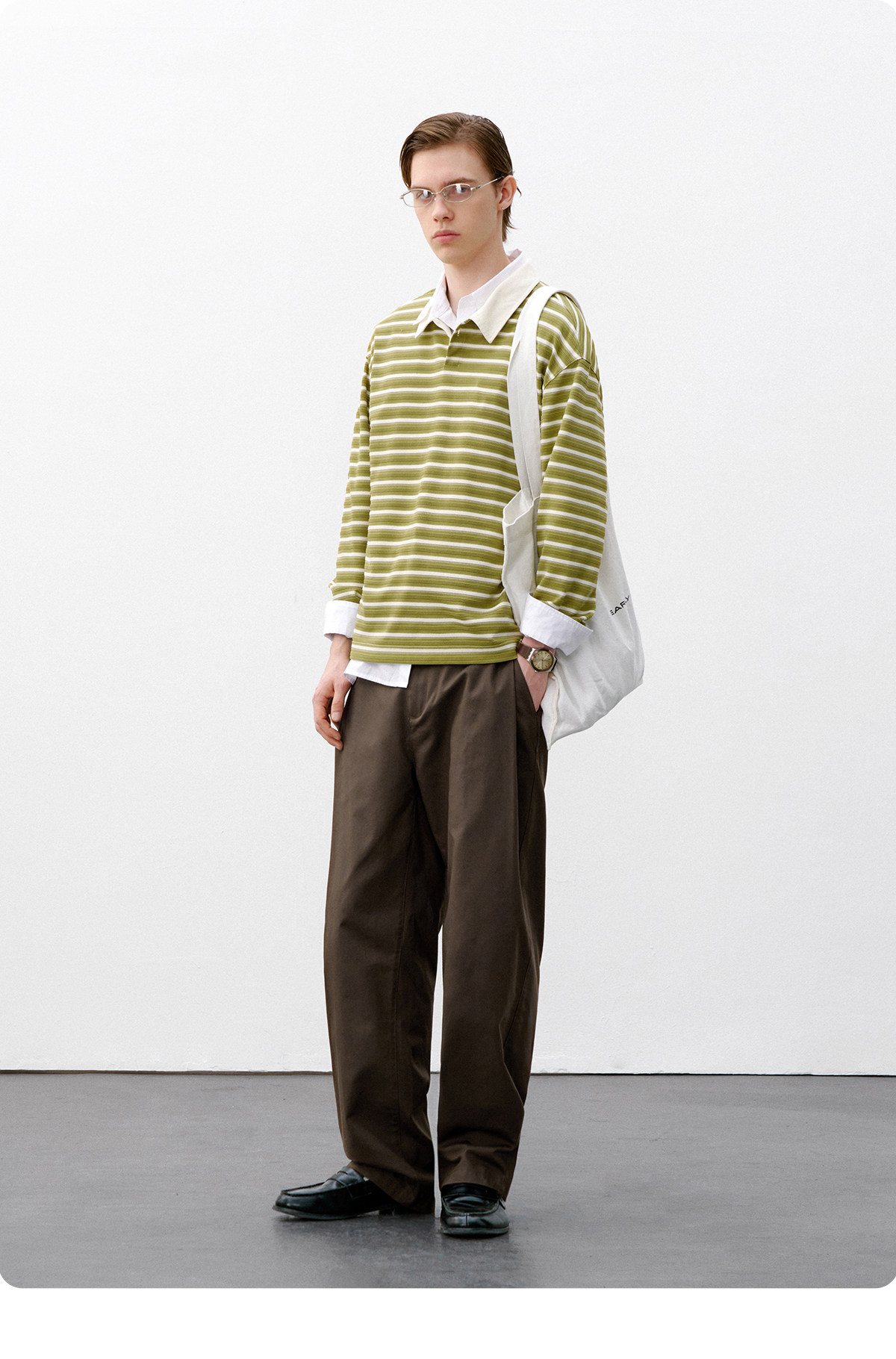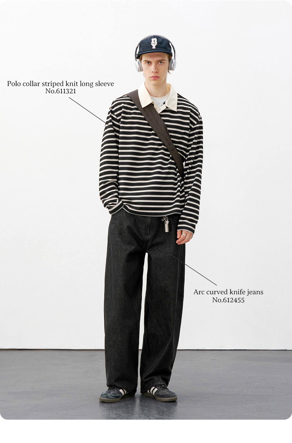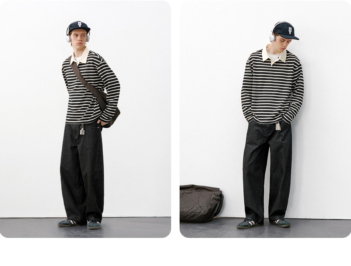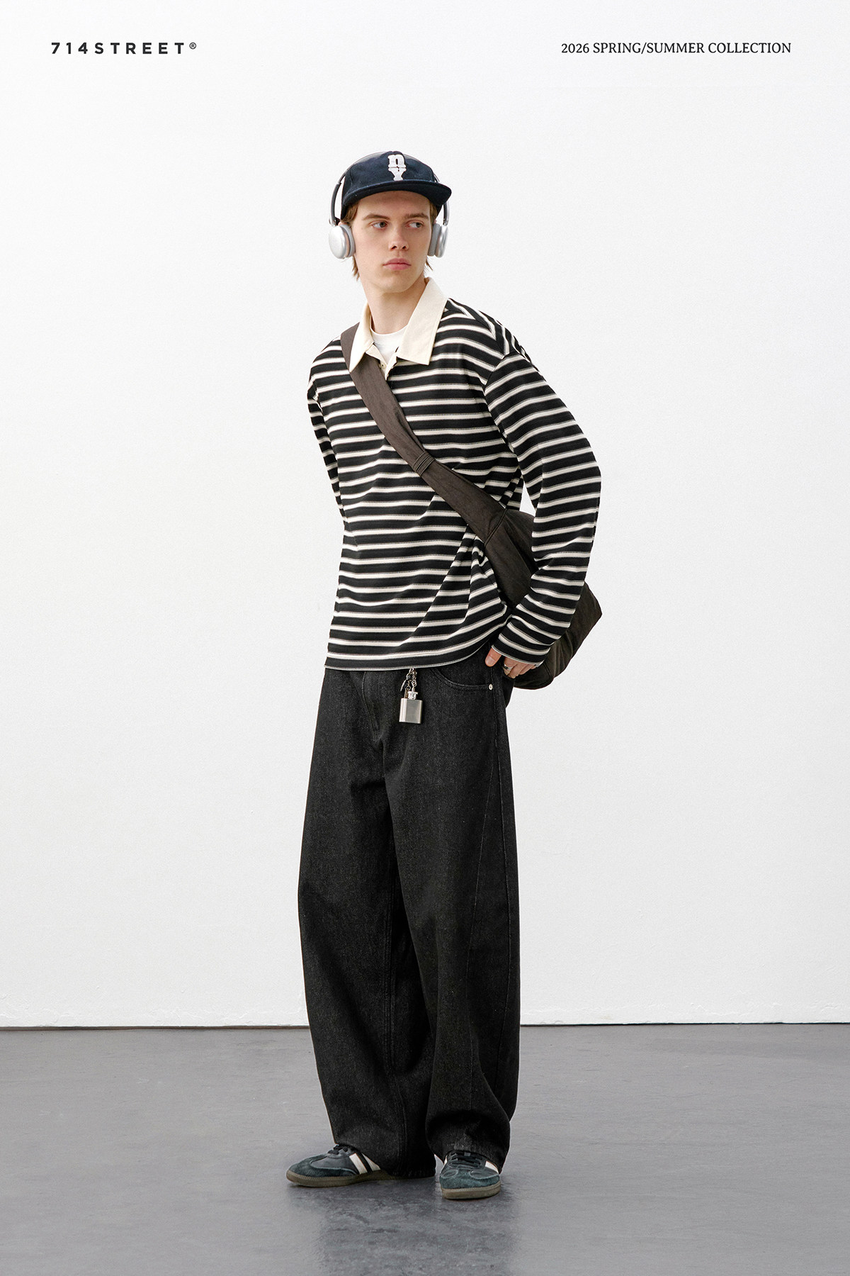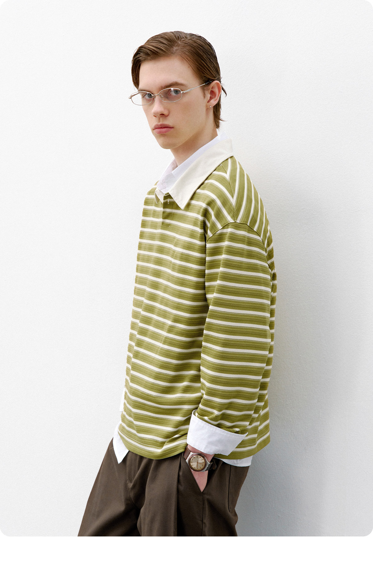 714street条纹提花肌感针织长袖T恤男2026春季复古Polo衫上衣女