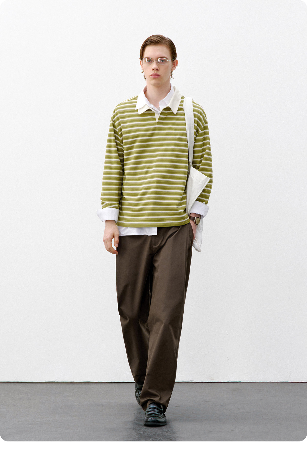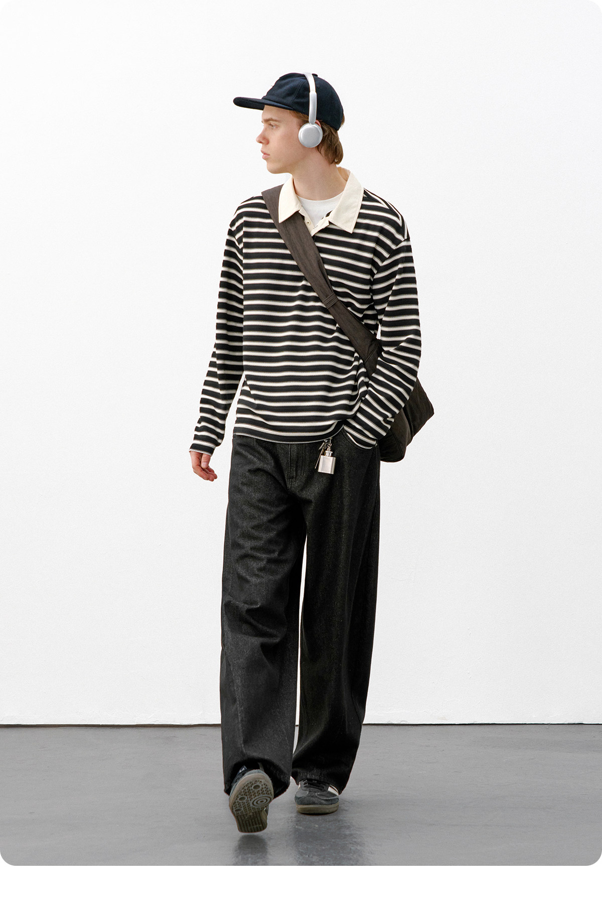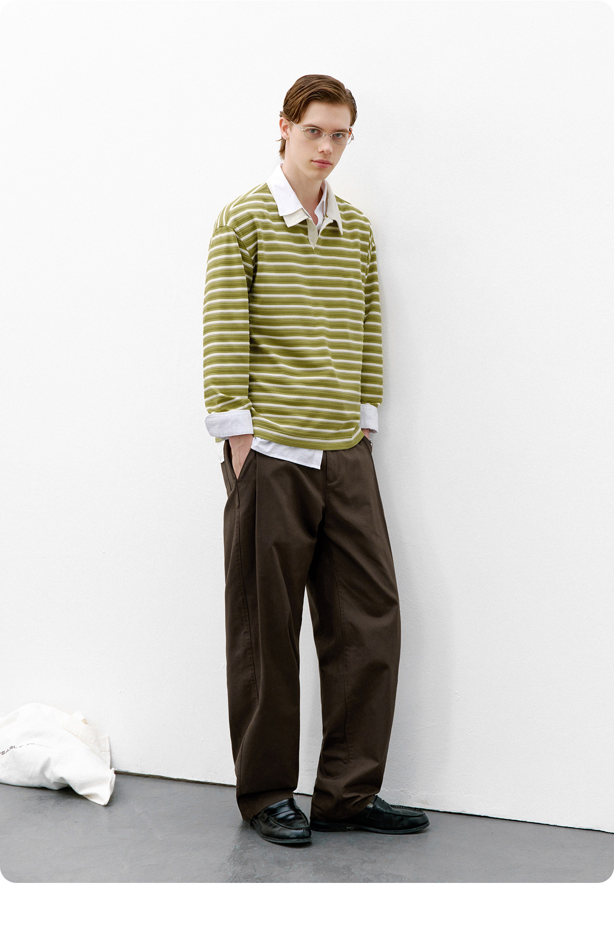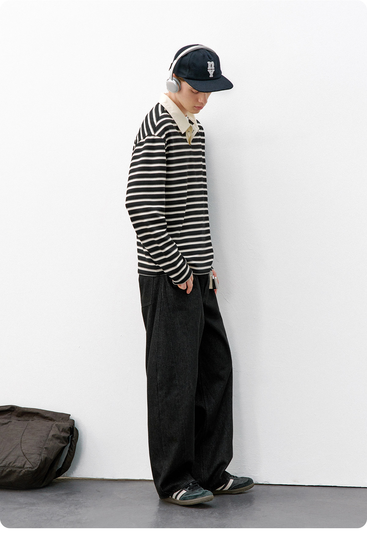 714street条纹提花肌感针织长袖T恤男2026春季复古Polo衫上衣女