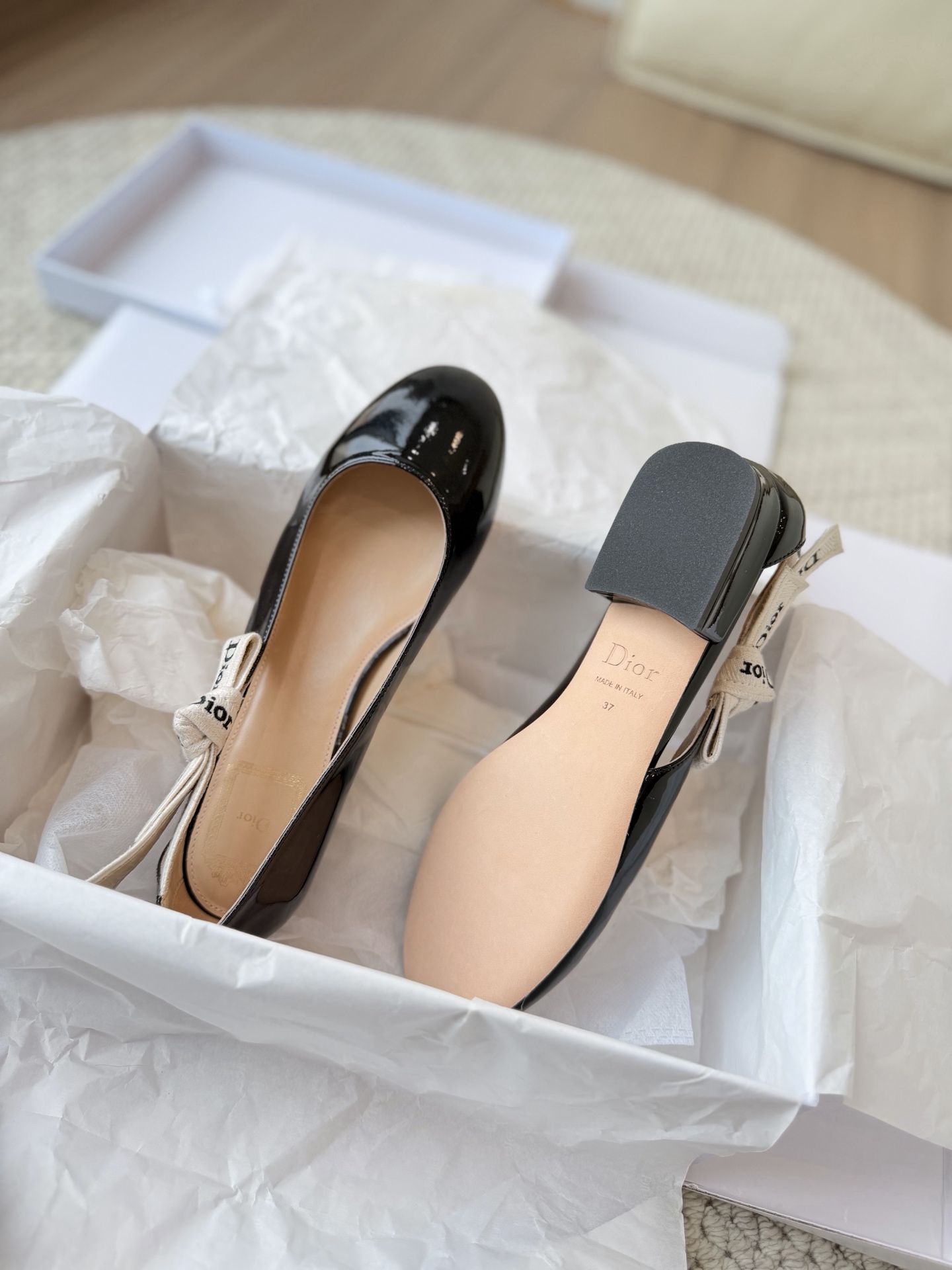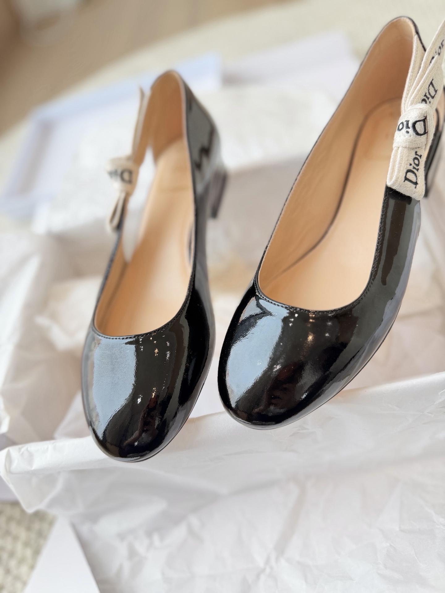 把经典延续下来! 小迪26春夏新款漆皮绑带粗跟鞋! 很秀气的一双!