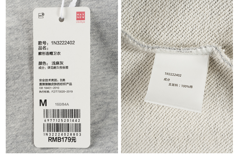 【卫衣】廓形连帽卫衣1N3222402