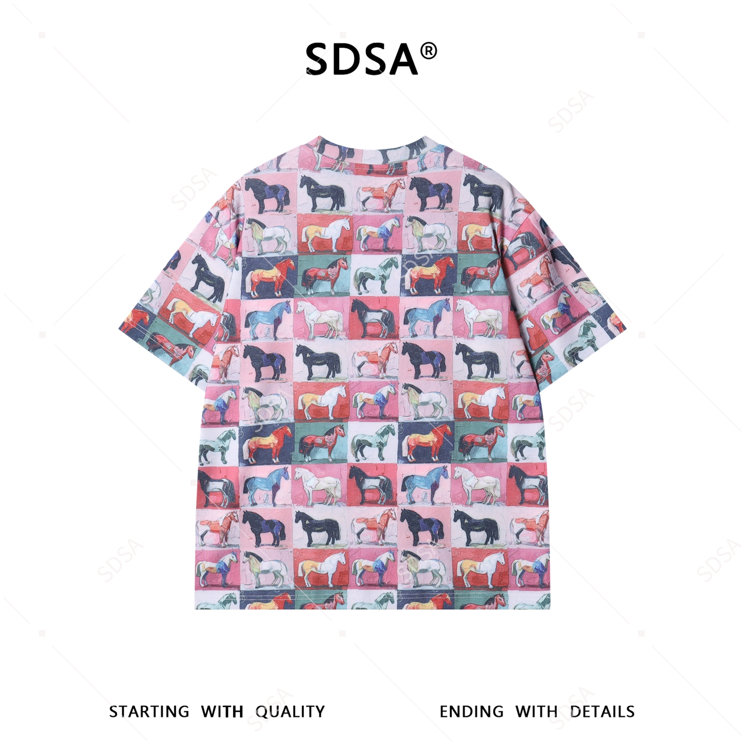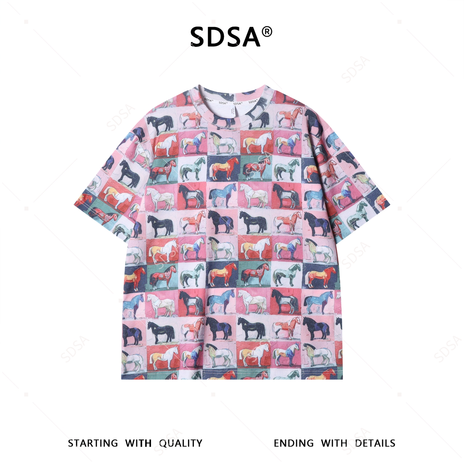 26T126SDSA男装2026新款高贵轻奢小众设计满印小马图案圆领短袖T恤百搭