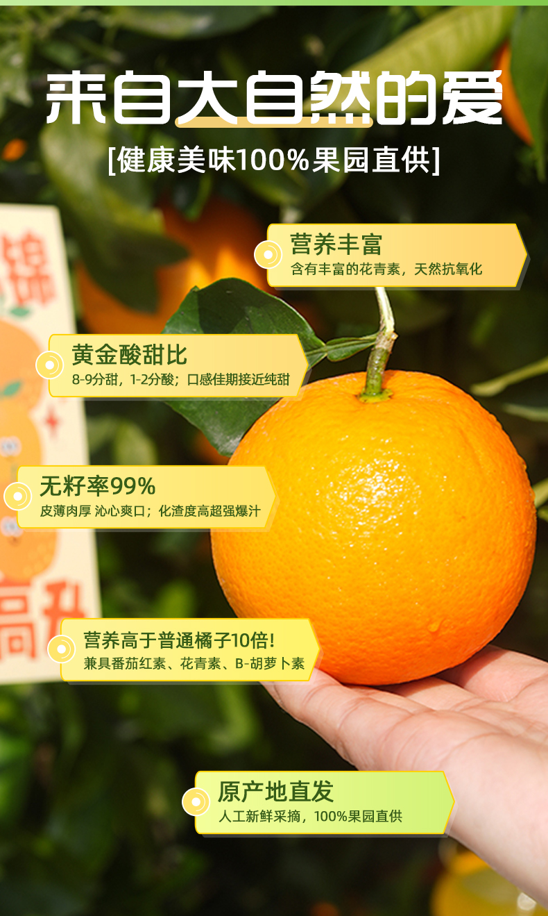 【京东快递】秭归中华红橙 橙子界的营养课代表 9甜1酸 99%无籽 皮薄肉厚 化渣度高超强爆汁 沁心爽口 ACS