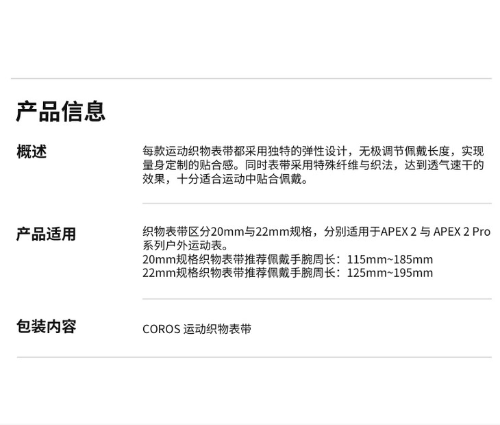 【romi专属】COROS高驰APEX 2 Pro 织物表带