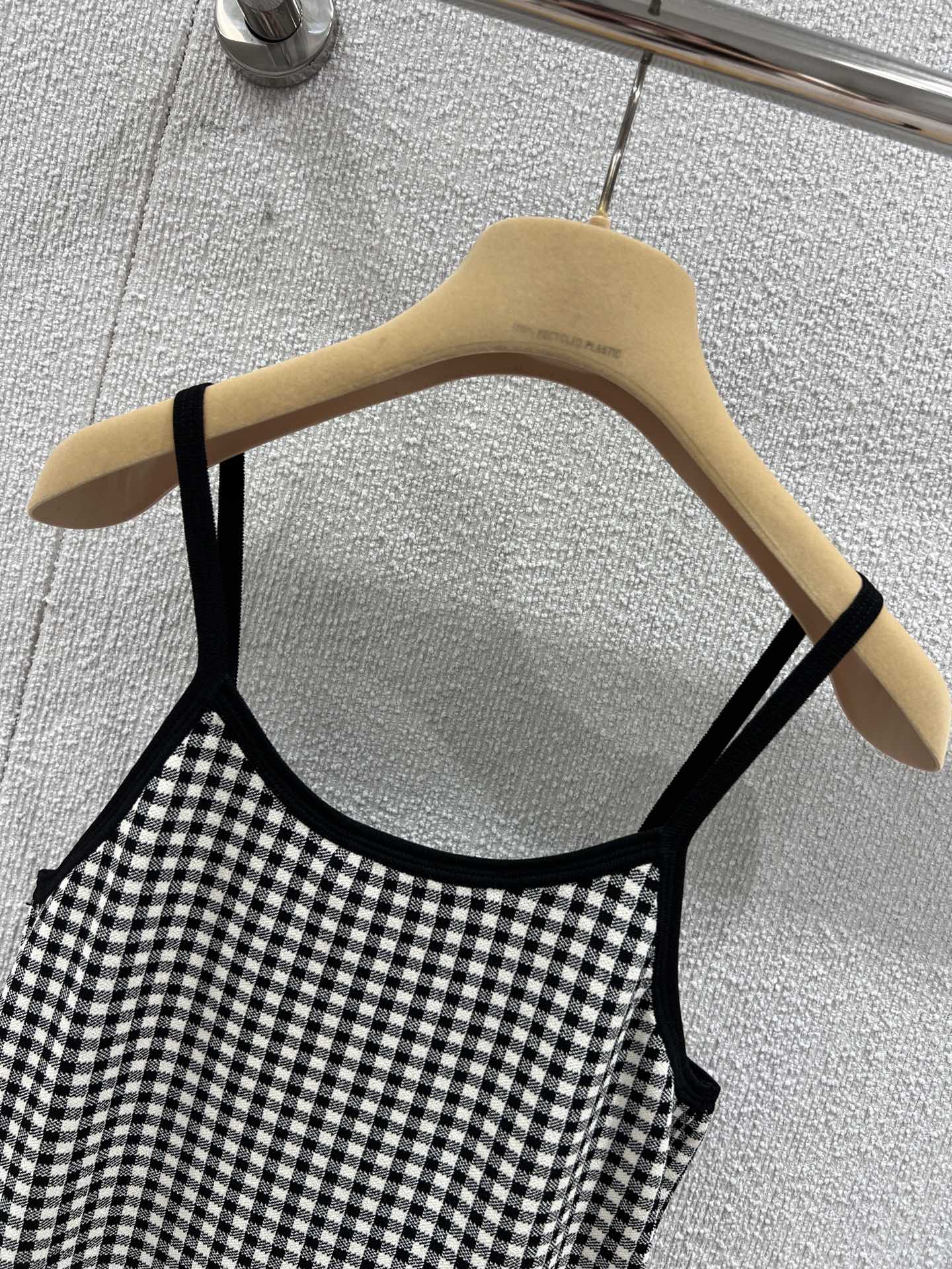 ⚠独家yb开发!高版出品!区别市面版本!进口纱线织造 舒适弹力 透气十足 细肩吊带裙剪裁 提升露肤度 勾勒肩颈线条更显瘦 与肩带保持一致的包边 提升细节质感 大身黑白格纹形成交织碰撞 配合字母徽标点缀 更能彰显精致气质 凸显穿搭高级感 弹性松紧更显精致 穿搭显瘦 尽显松弛调性 轻奢时髦气质 单穿叠穿均可 做工品质看细节。