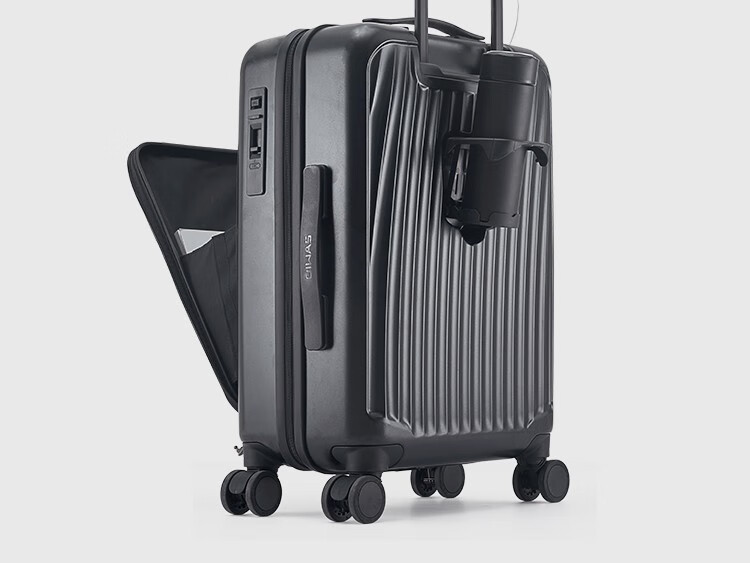 爱华仕前开盖商务行李箱男拉杆箱可充电20英寸登机箱旅行箱女密码箱6641 黑色 20英寸(登机箱)