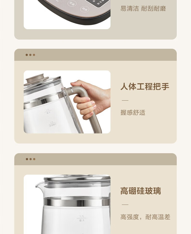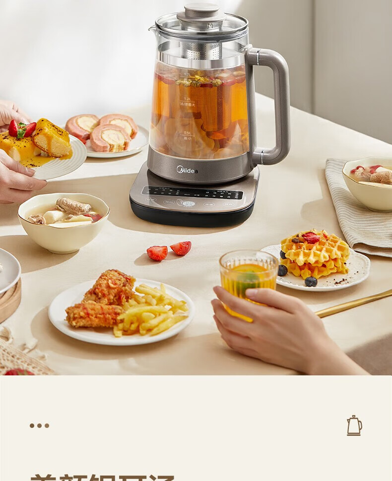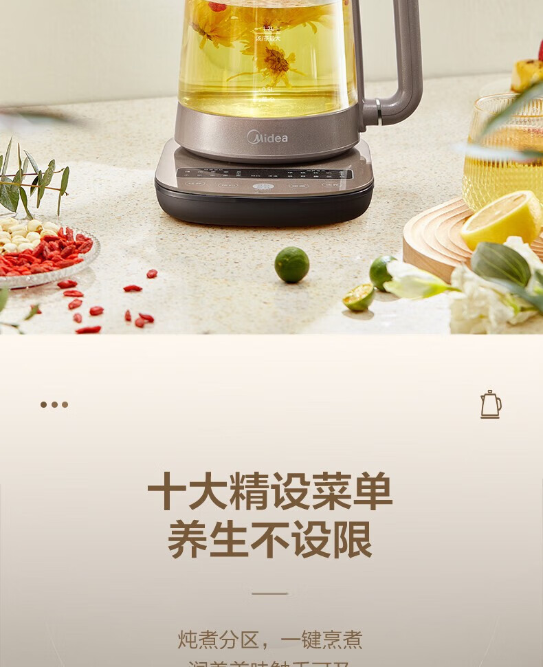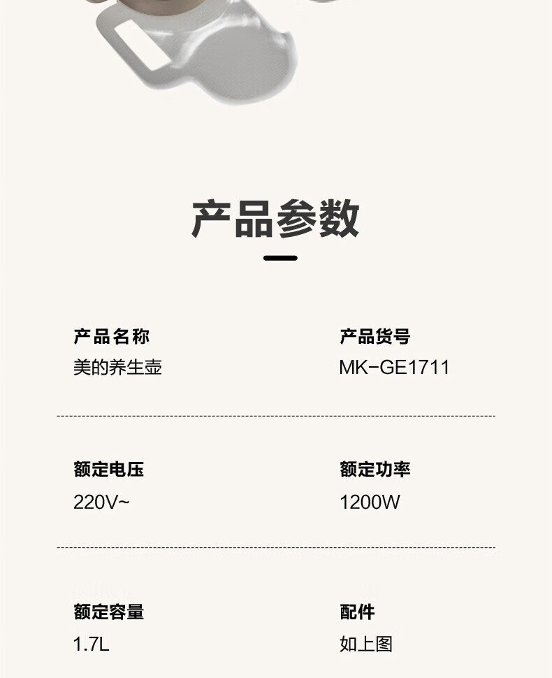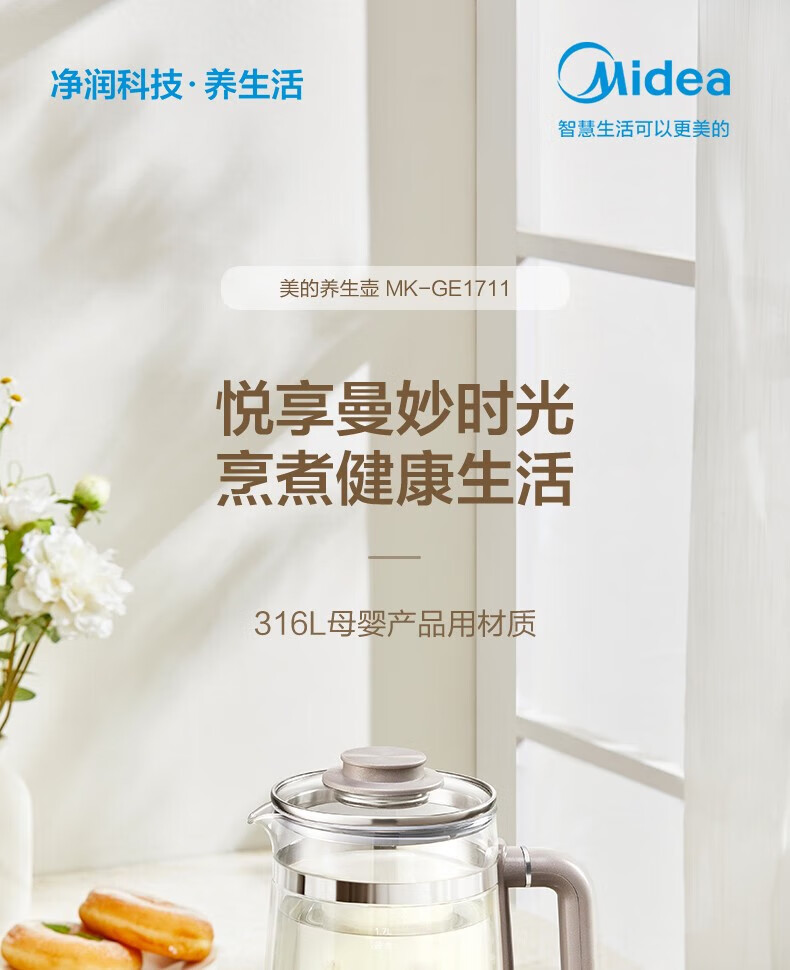 美的(Midea)养生壶 1.7升 煮茶器 316L母婴级材质电水壶 1200W大功率烧水壶 炖煮壶 MK-GE1711