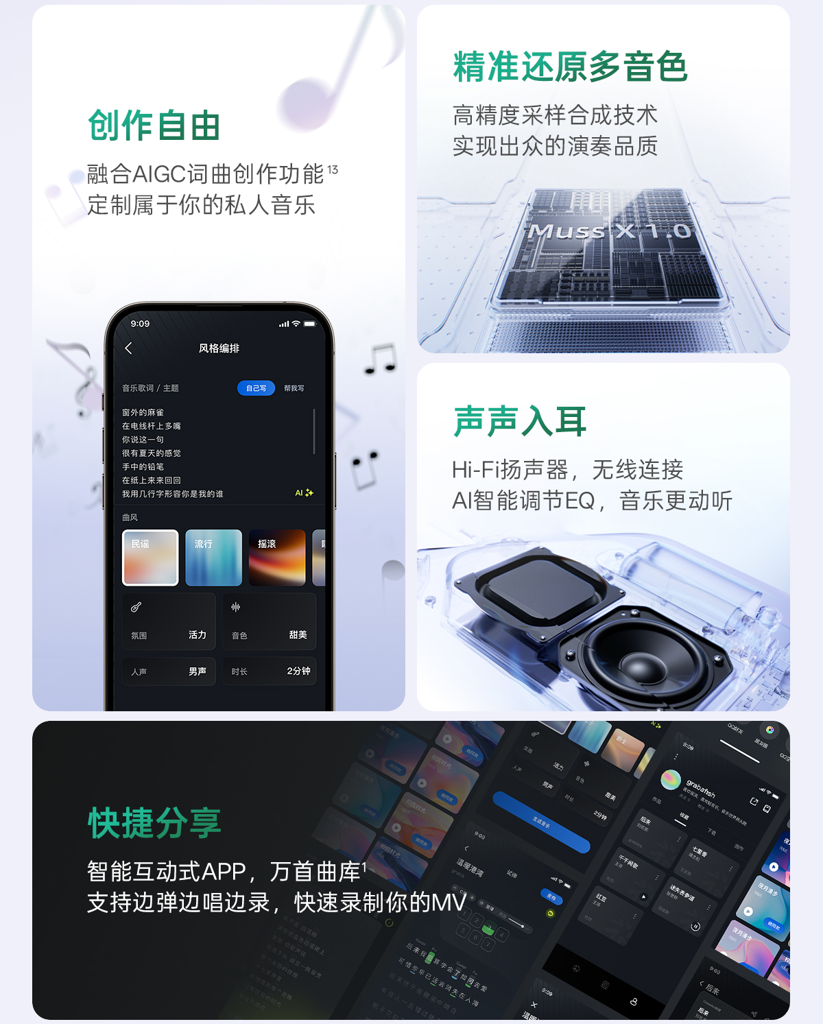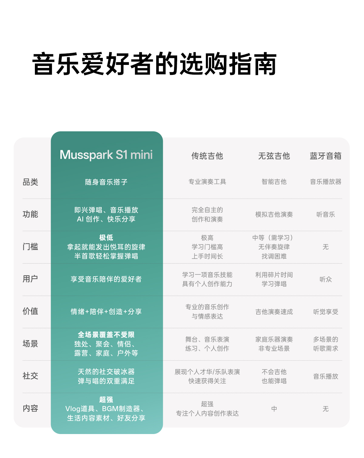 Musspark智能AI随弹吉他无弦电子自动挡小巧便携口袋吉他S1mini