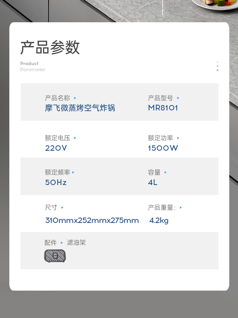 摩飞蒸汽嫩烤空气炸锅 家用新款大容量炸锅多功能小型可视化电炸锅 MR8101
