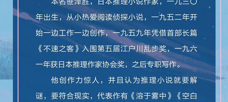 溶于雾中(日)笹泽左保 著 日本推理 午夜文库