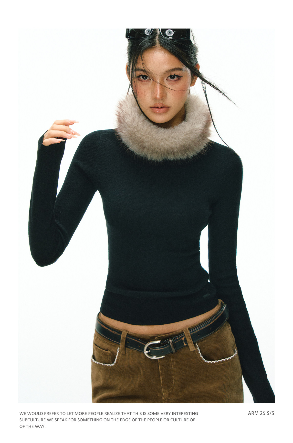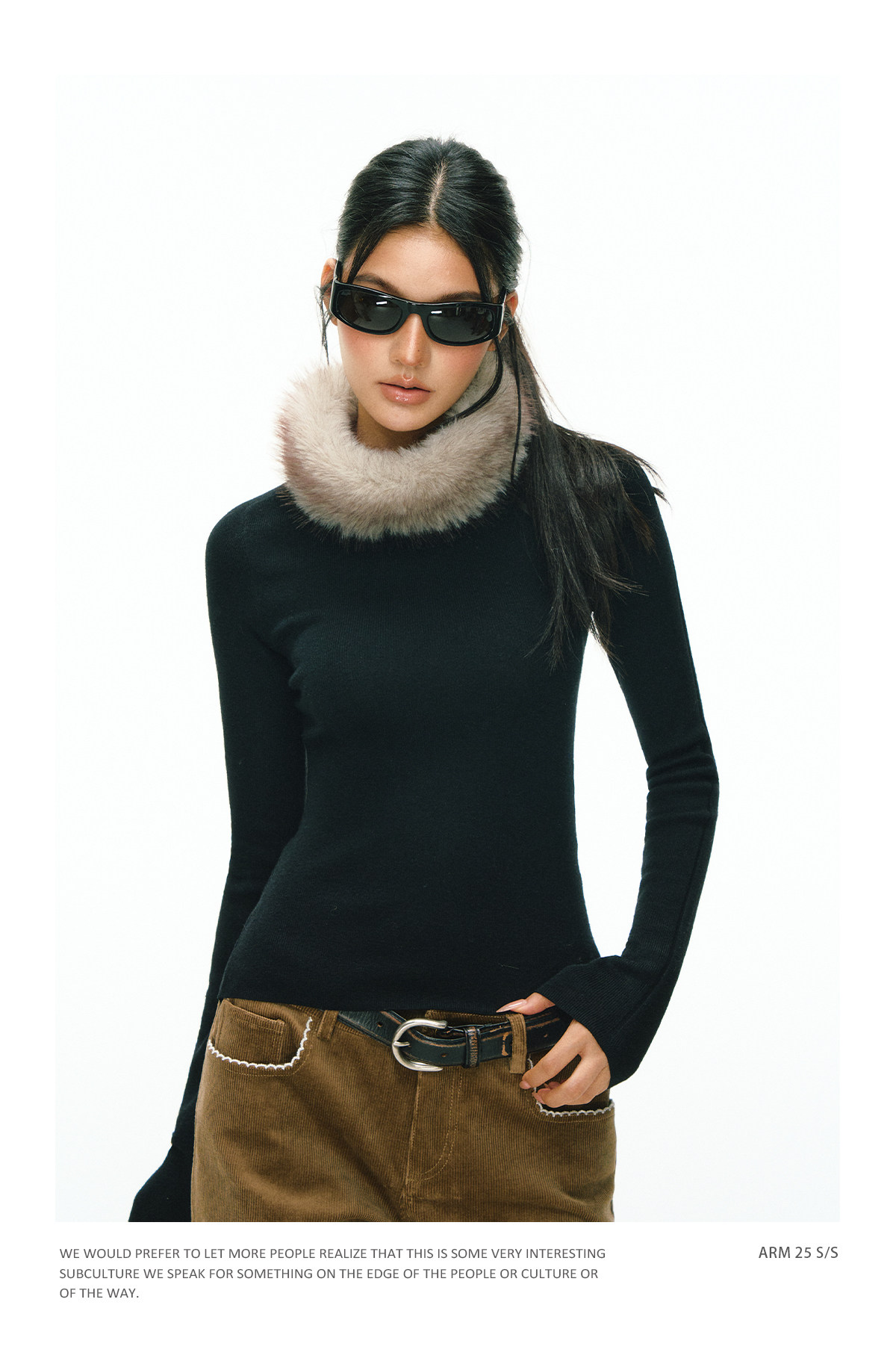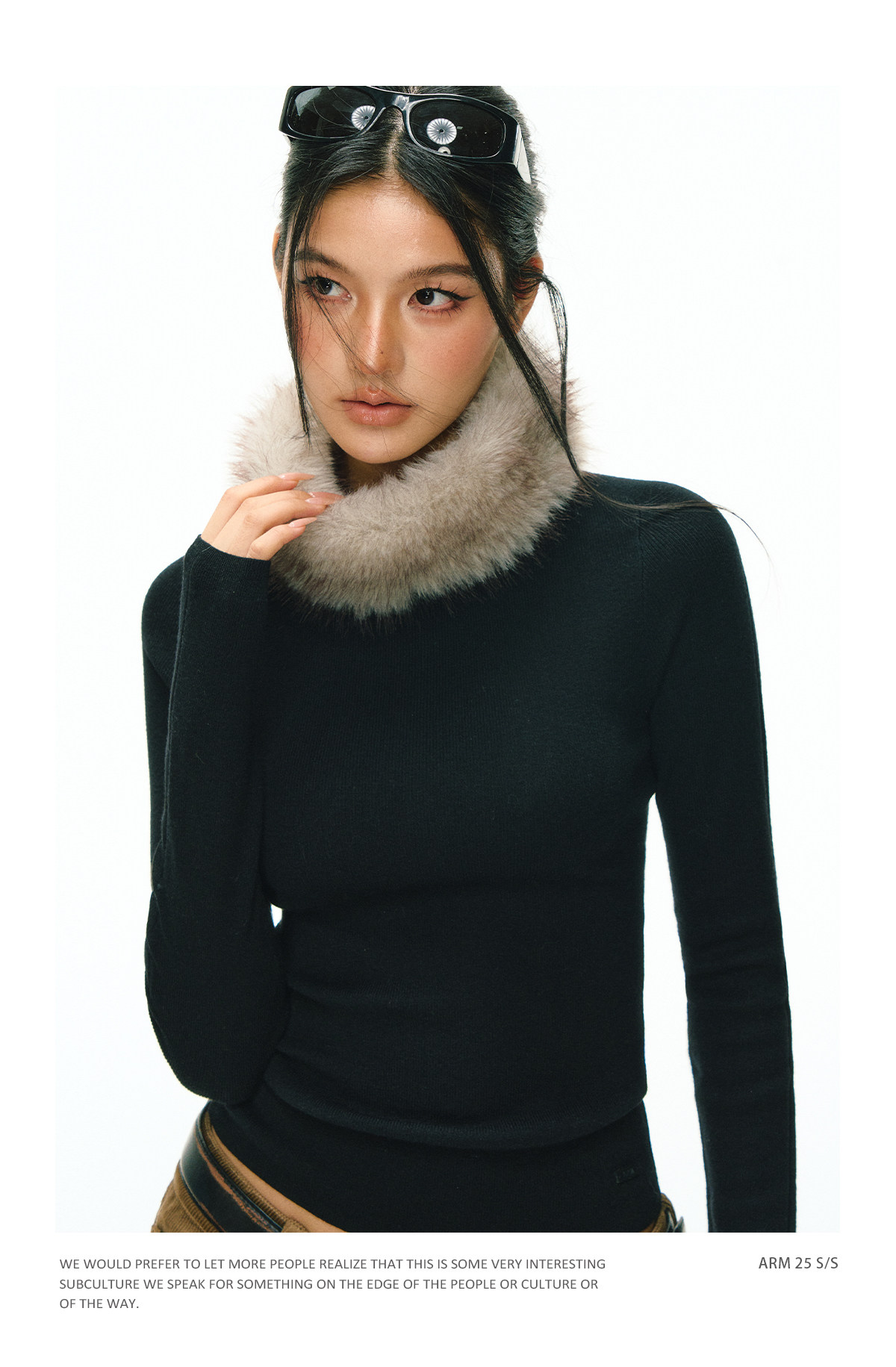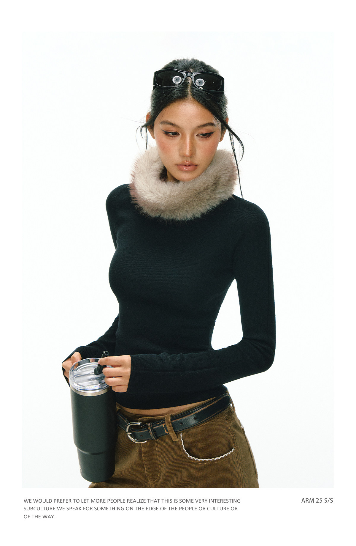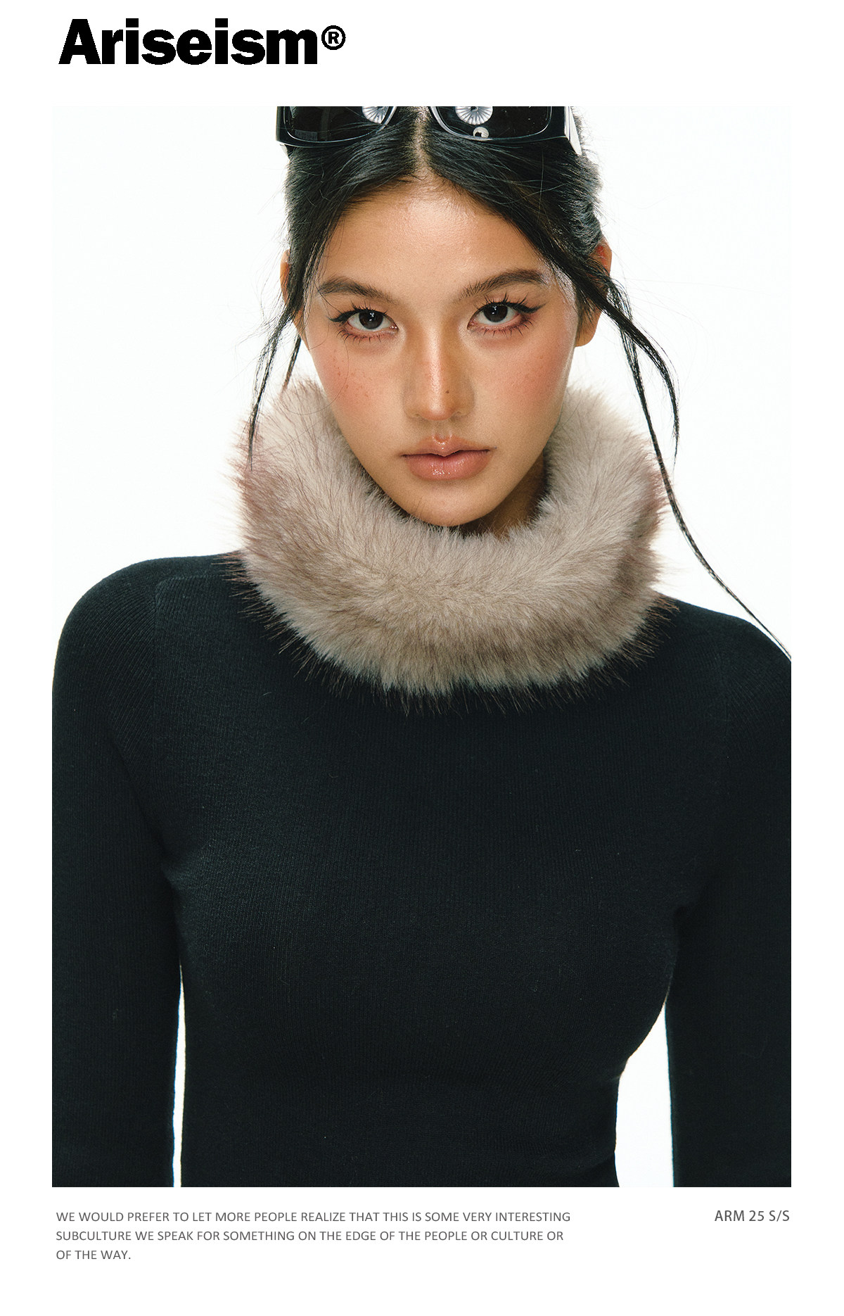 Ariseism 美式复古设计感毛领围脖可脱卸毛衣针织衫女秋冬新款
