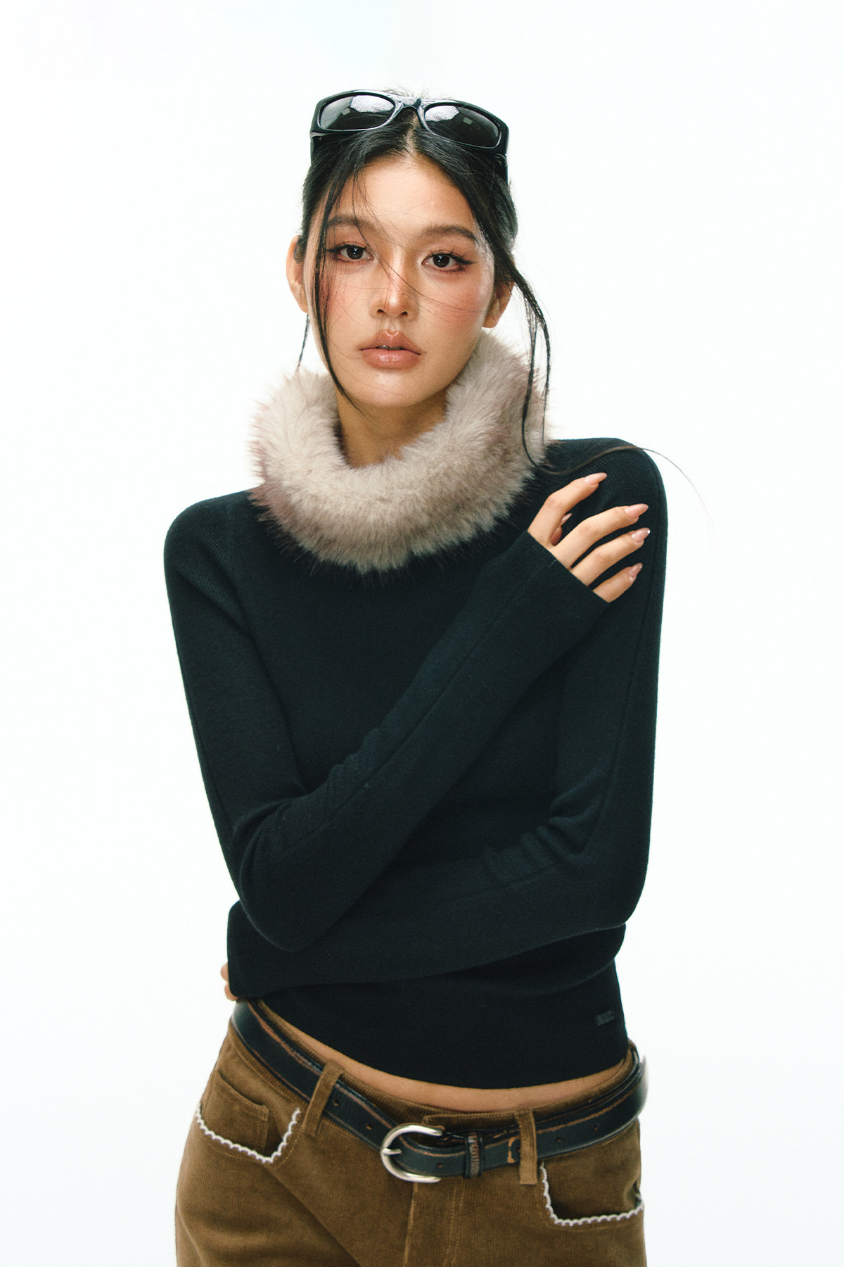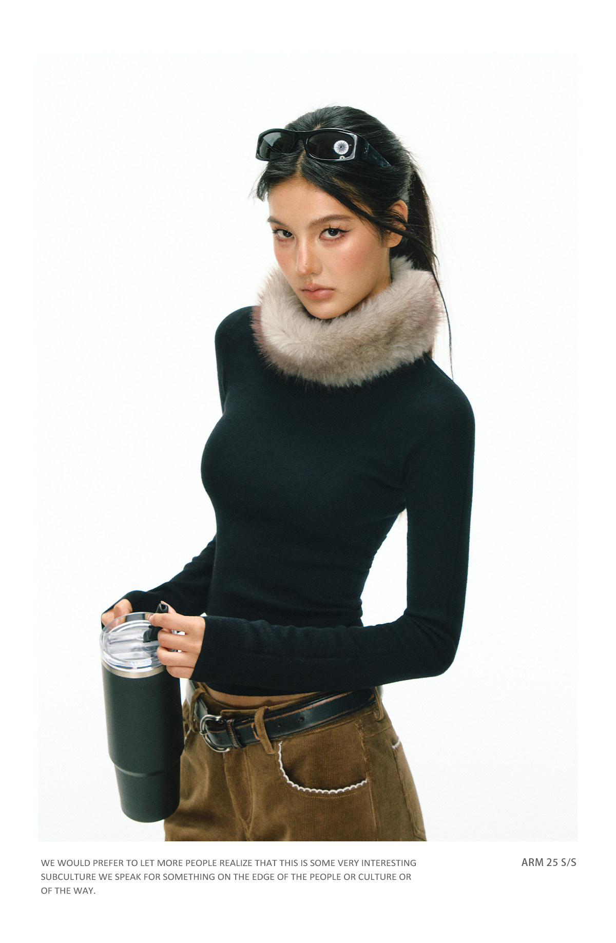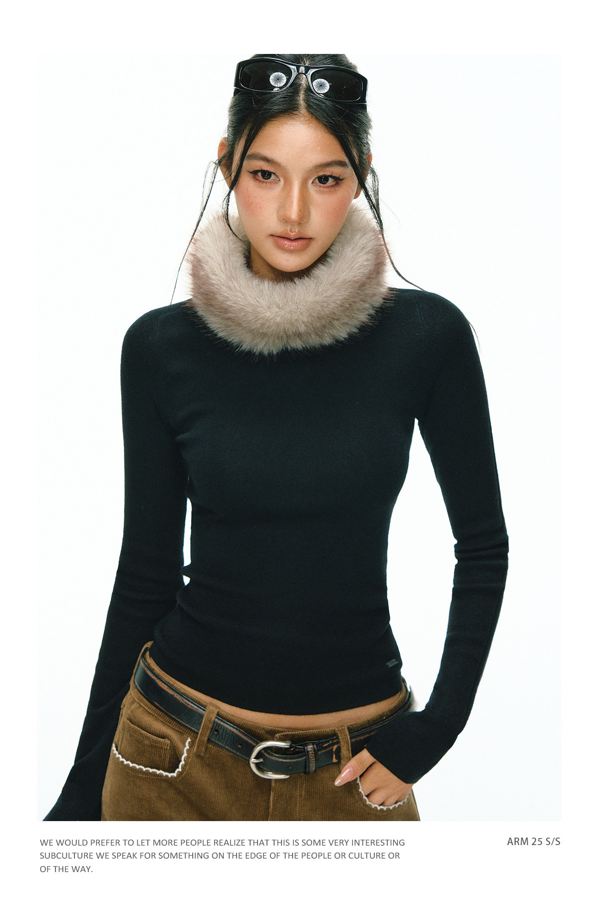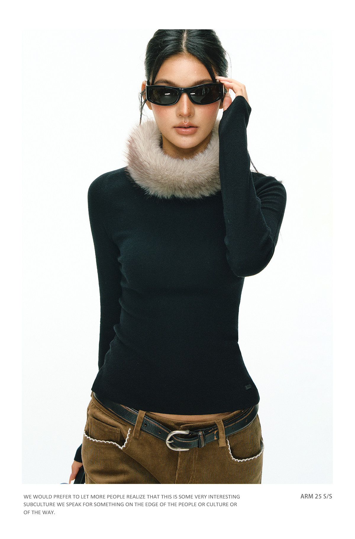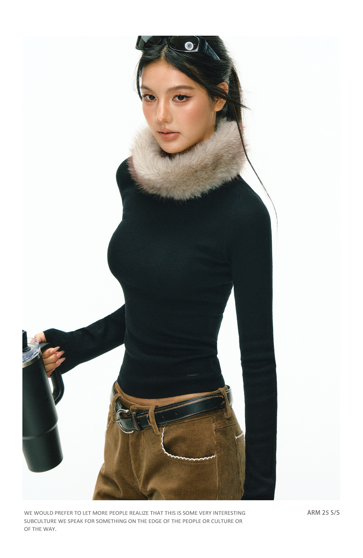 Ariseism 美式复古设计感毛领围脖可脱卸毛衣针织衫女秋冬新款