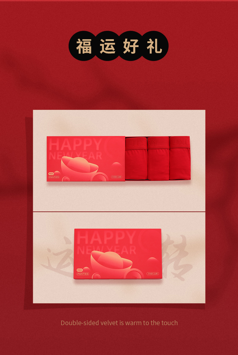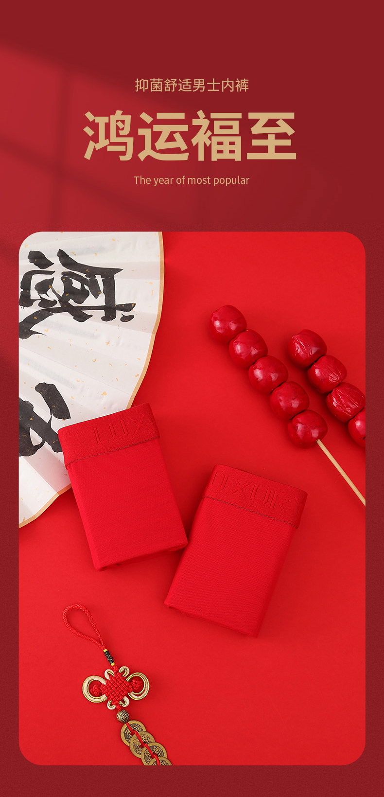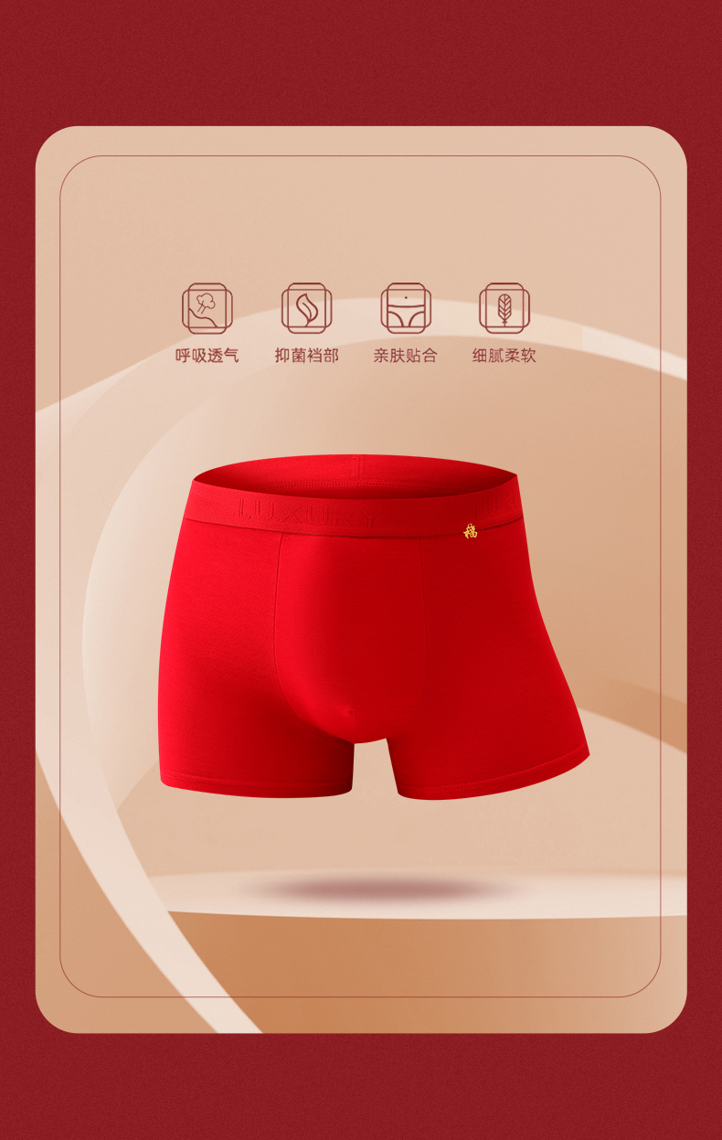 严选 | 草本初色抑菌舒适当红之年男士内裤 新款运动透气四角平角短裤 三条装NQ009