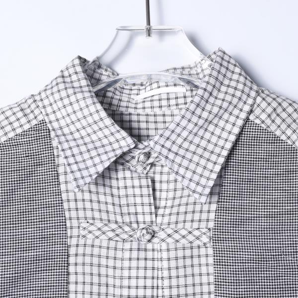 T2179早春新款时尚个性韩版拼接衬衫撞色刺绣标圆领长袖高级感设计百搭
