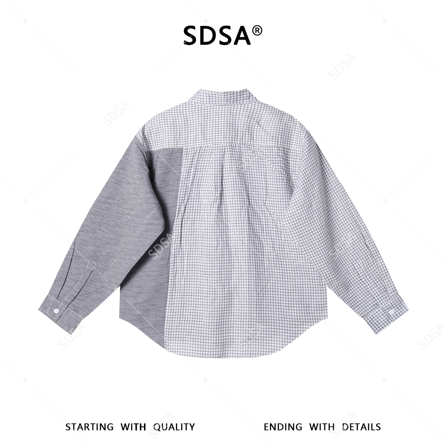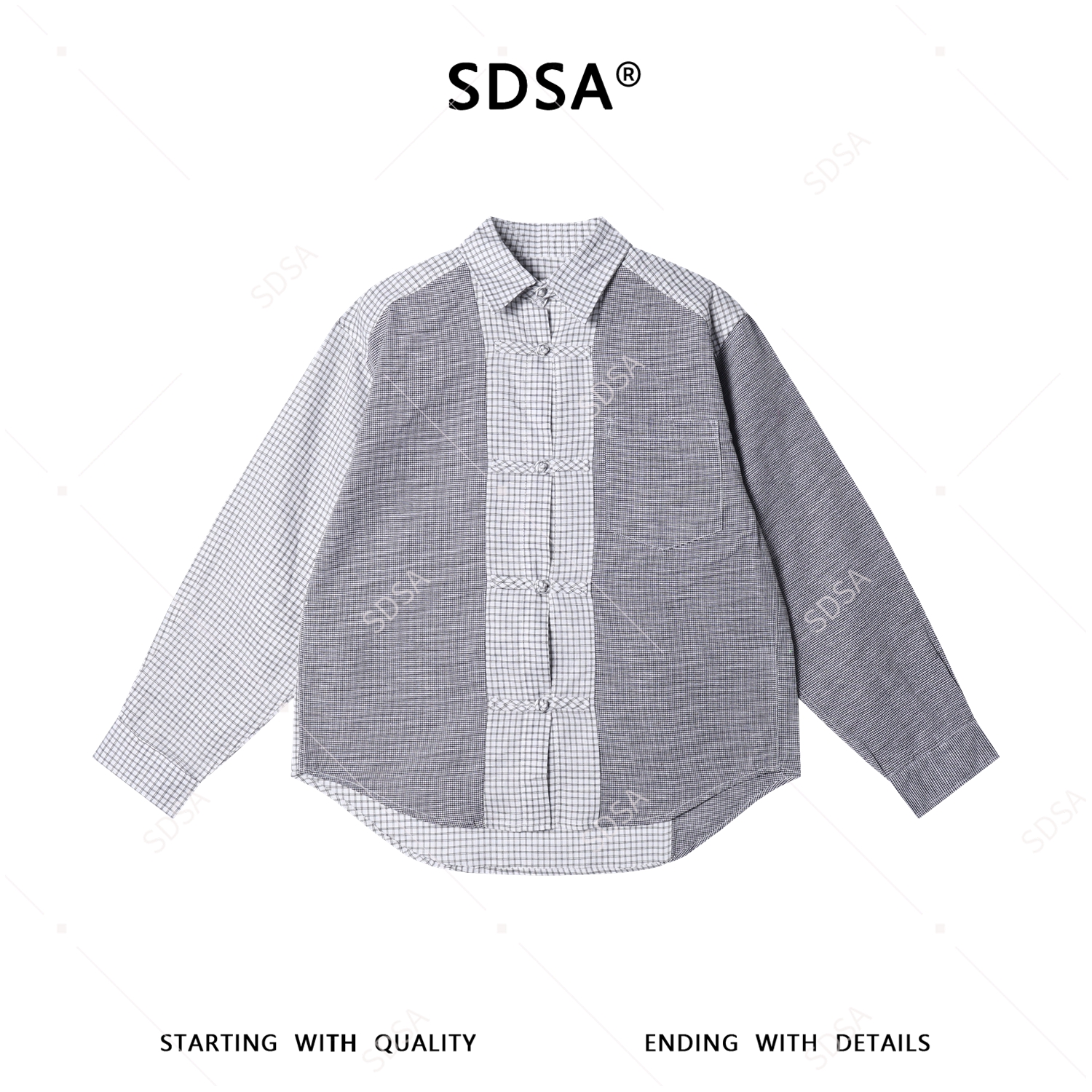 2638SDSA男装2026新款高贵轻奢小众设计感拼接格纹衬衫新中式盘扣百搭