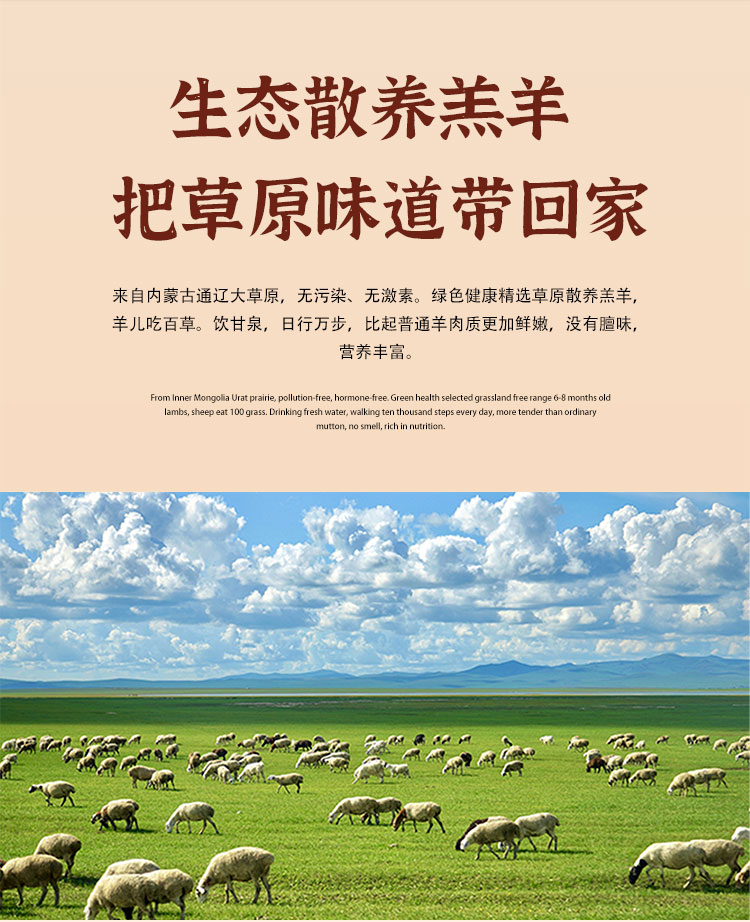 内蒙古通辽市奈曼旗沙漠甜心内蒙古大草原散养原切无添加羊寸排肉1kg/袋