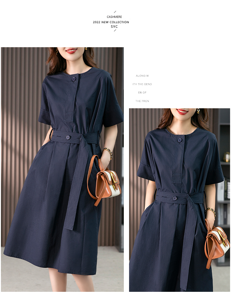 87021原形法式气质衬衫连衣裙女2024春夏季新款韩版收腰显瘦裙子中长款