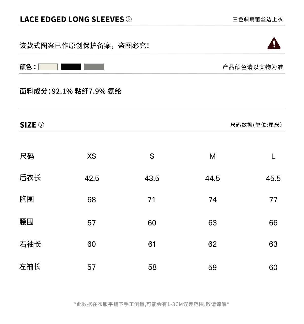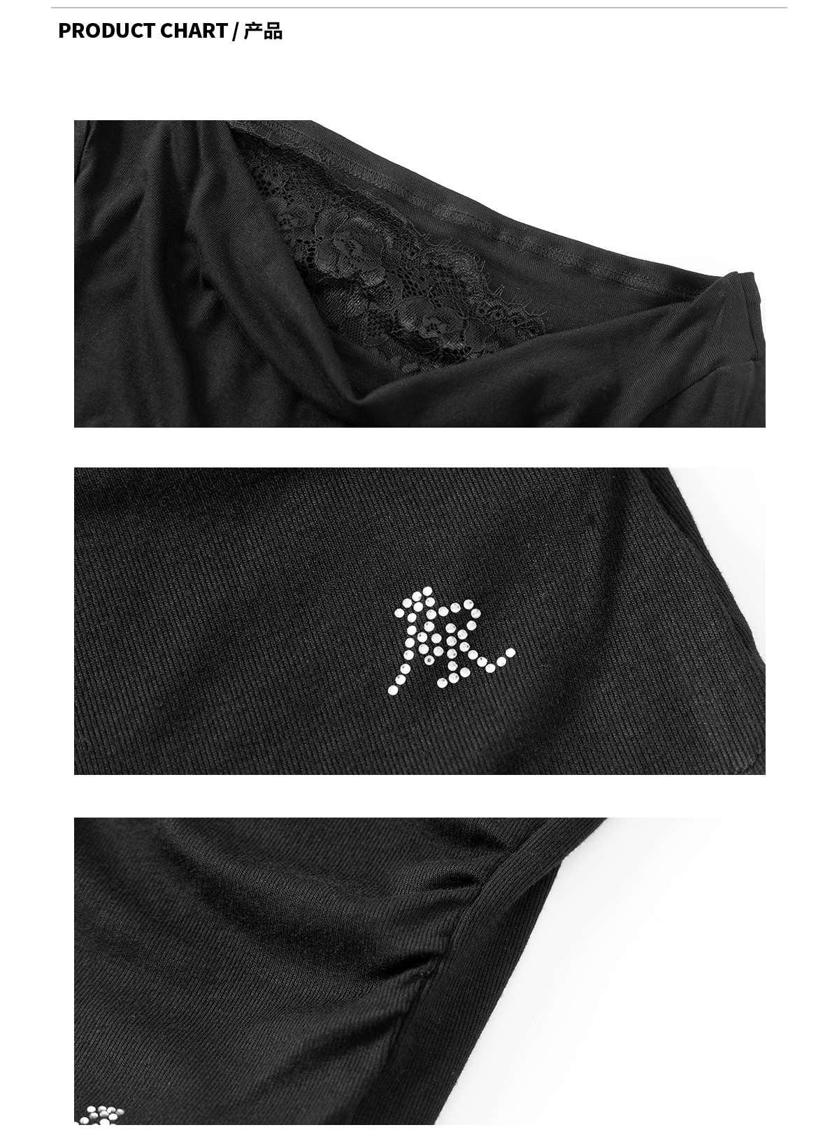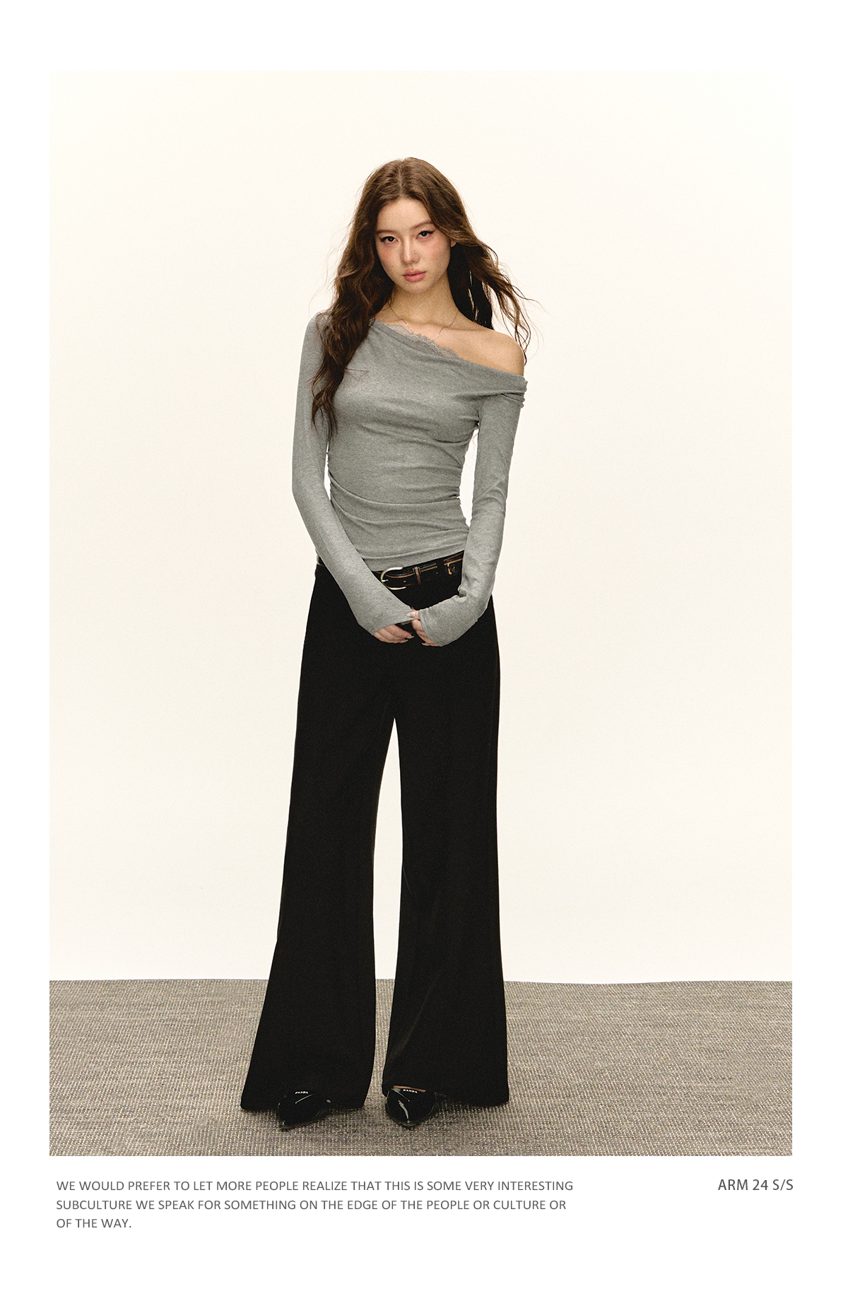 Ariseism 美式复古设计感蕾丝斜肩长袖T恤女春季新款内搭上衣
