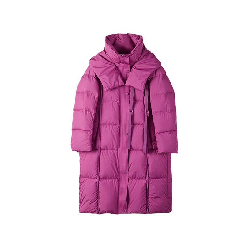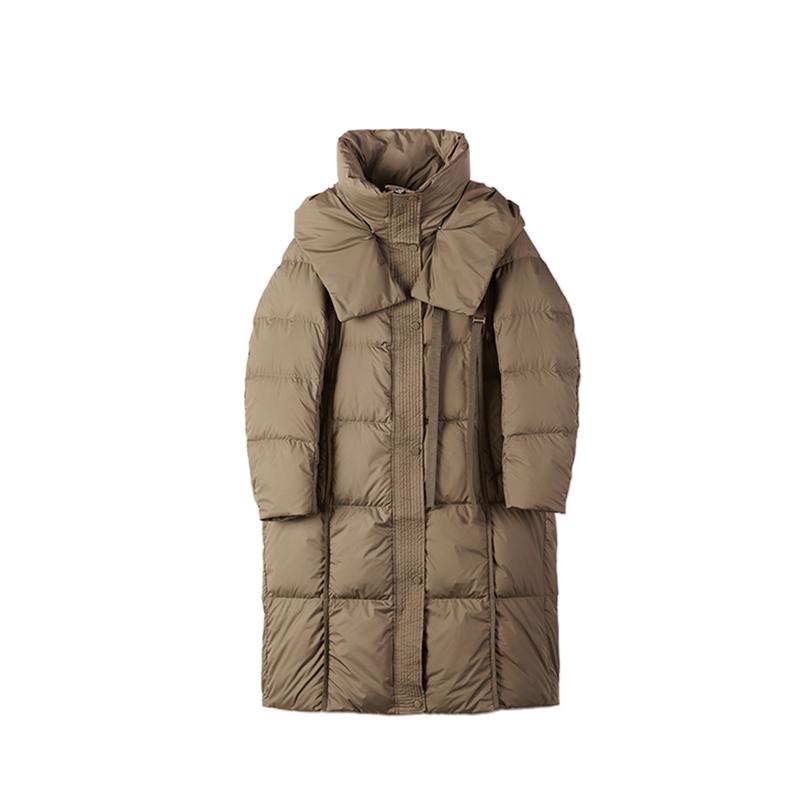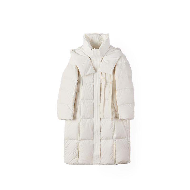 原形时尚高端长款羽绒服过膝白鸭绒连帽外套U89766
