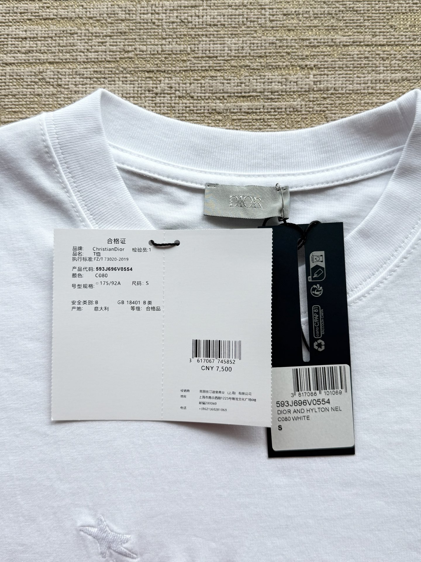 Dior25SS字母标识刺绣短袖T恤‼️整件衣服7500购买Zp拆解打造,定制棉质平纹针织面料,做到100%全棉进口纱线,意大利制造,前幅饰以DIOR AND LEWIS HAMIL TON刺绣标识,定制标志性罗纹领口,袖口 下摆双层锁边超高密度走线,真正做到1:1copy 闭眼入 码数:XS S M L
