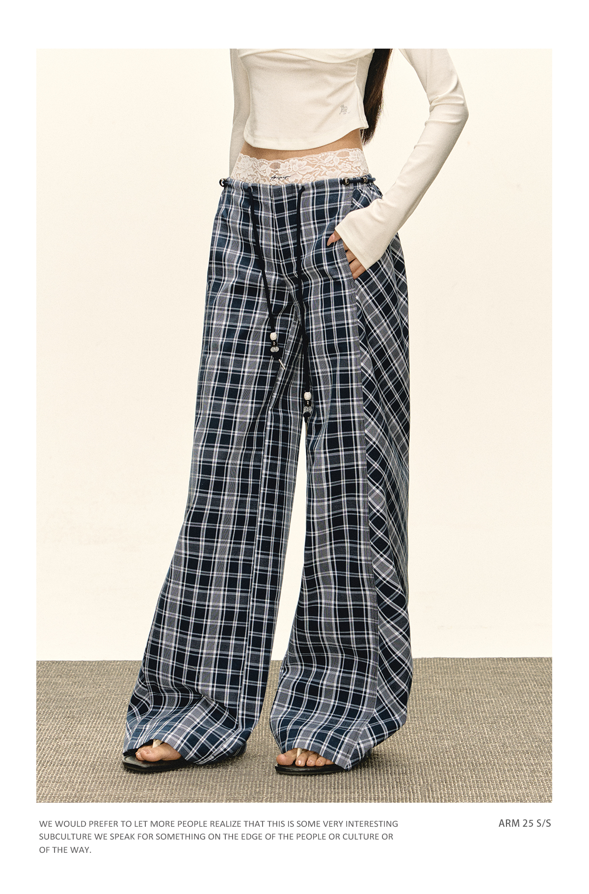 Ariseism 美式复古格子休闲裤蕾丝短裤女秋季新款长裤子