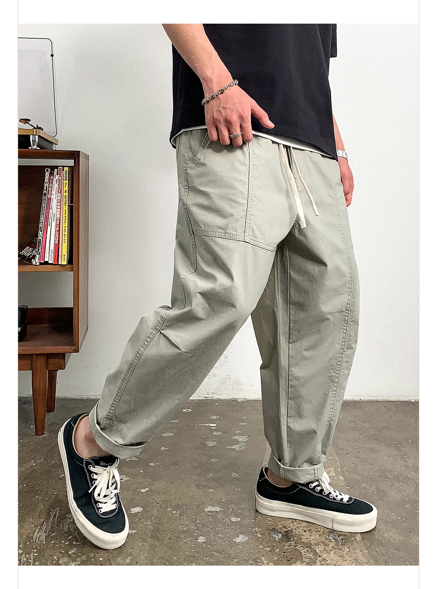 徐太浪日系复古缉明线休闲裤男春季潮流百搭宽松束脚哈伦裤长裤潮