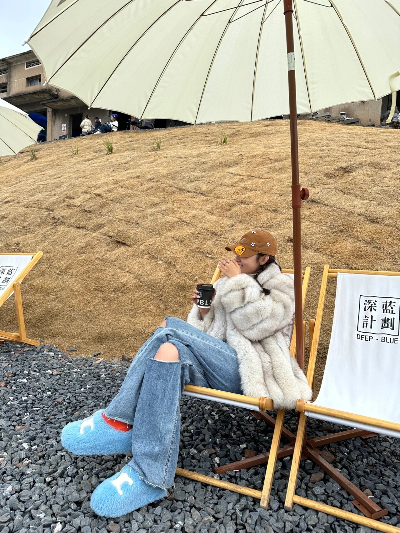 * 凯旋门 2023新款冬秋?羊羔毛毛穿外?百搭厚底内高增?一脚懒蹬?人包头穆勒拖鞋(HD)