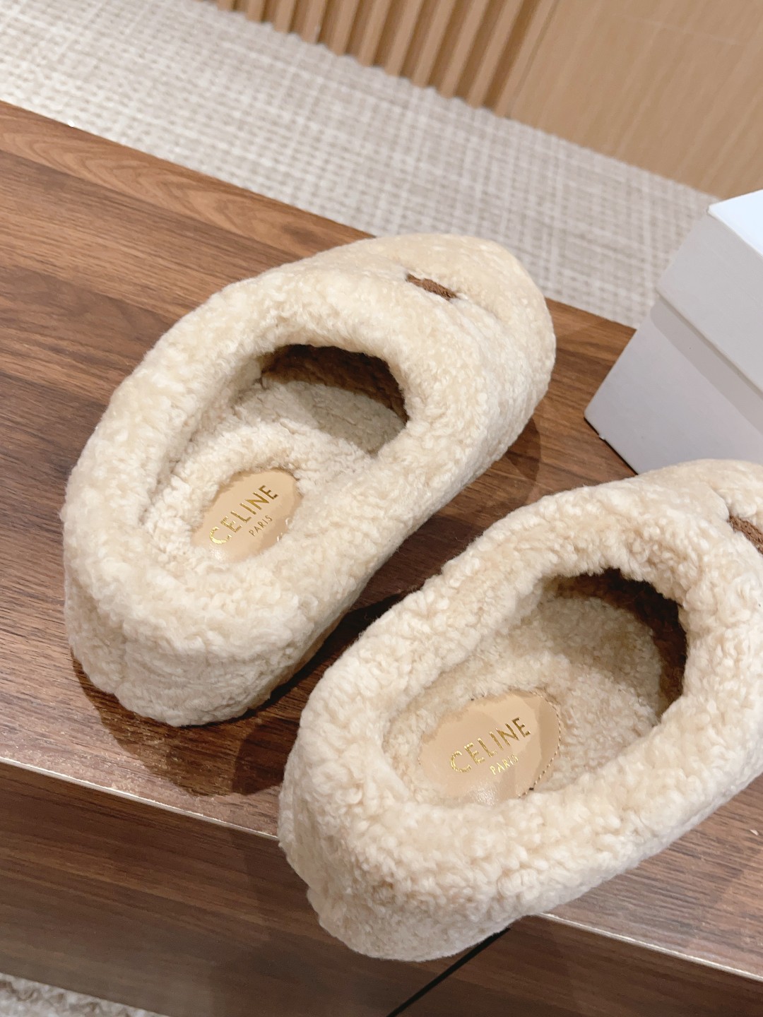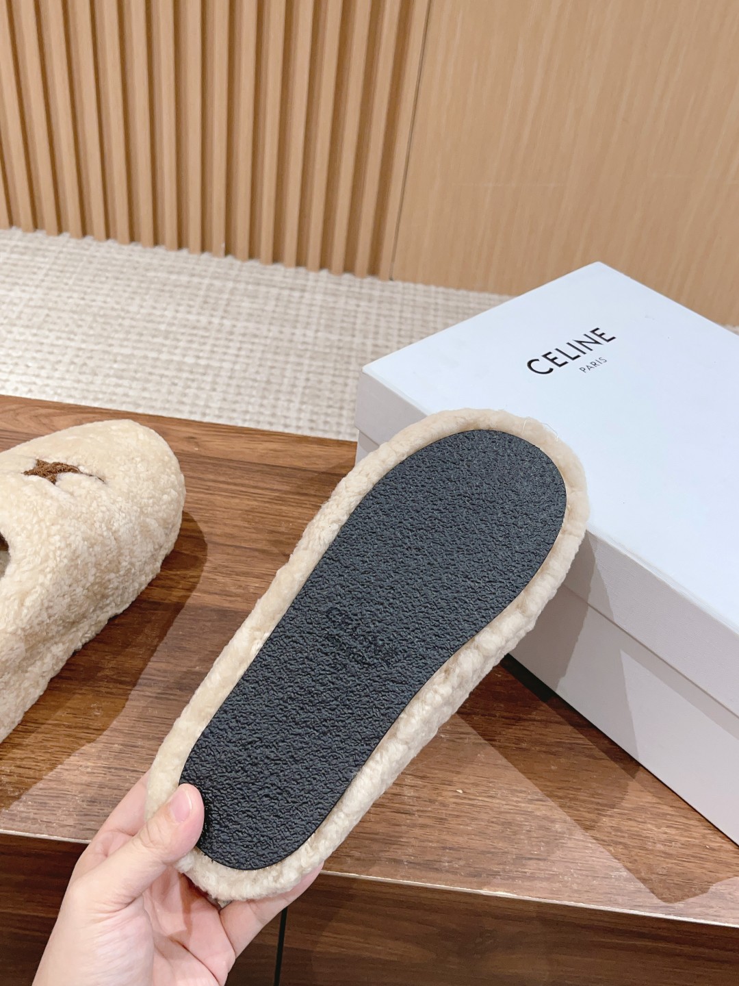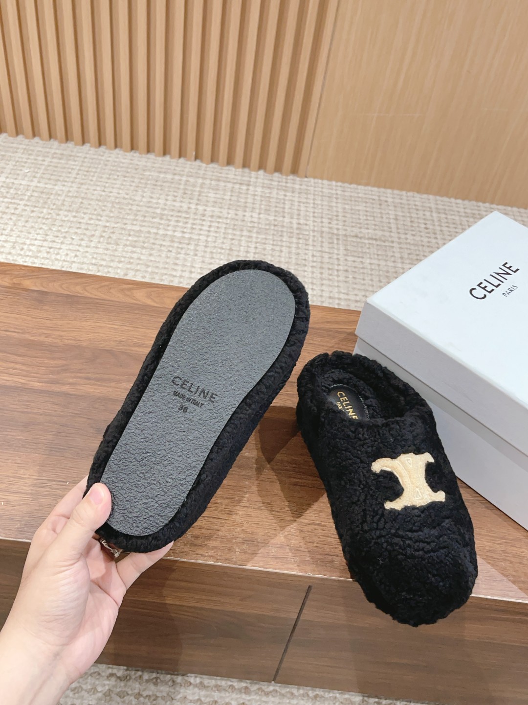 非?街常?头 非常nice 新款的?头包?穆勒拖?之比?,这?羊双?羔毛穆?拖勒?延续了Celine一贯的?感质?,对于脚瘦、脚宽?脚或?背高?妹的?子都很?好友?,上脚感觉?好良?。