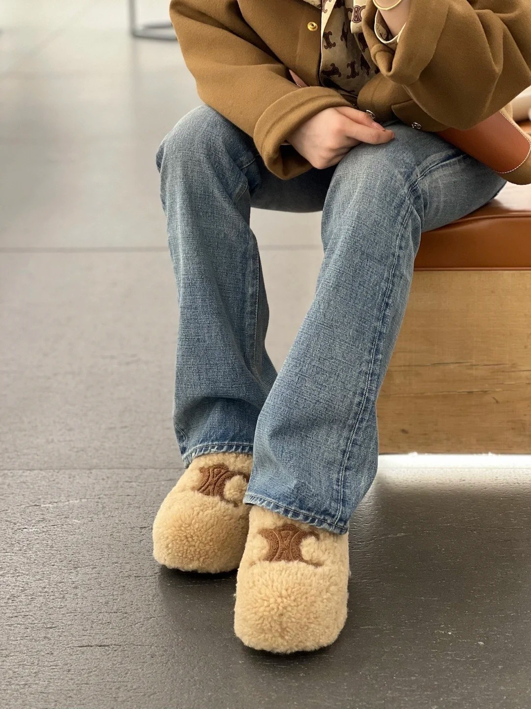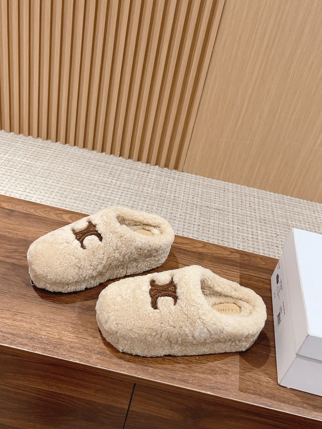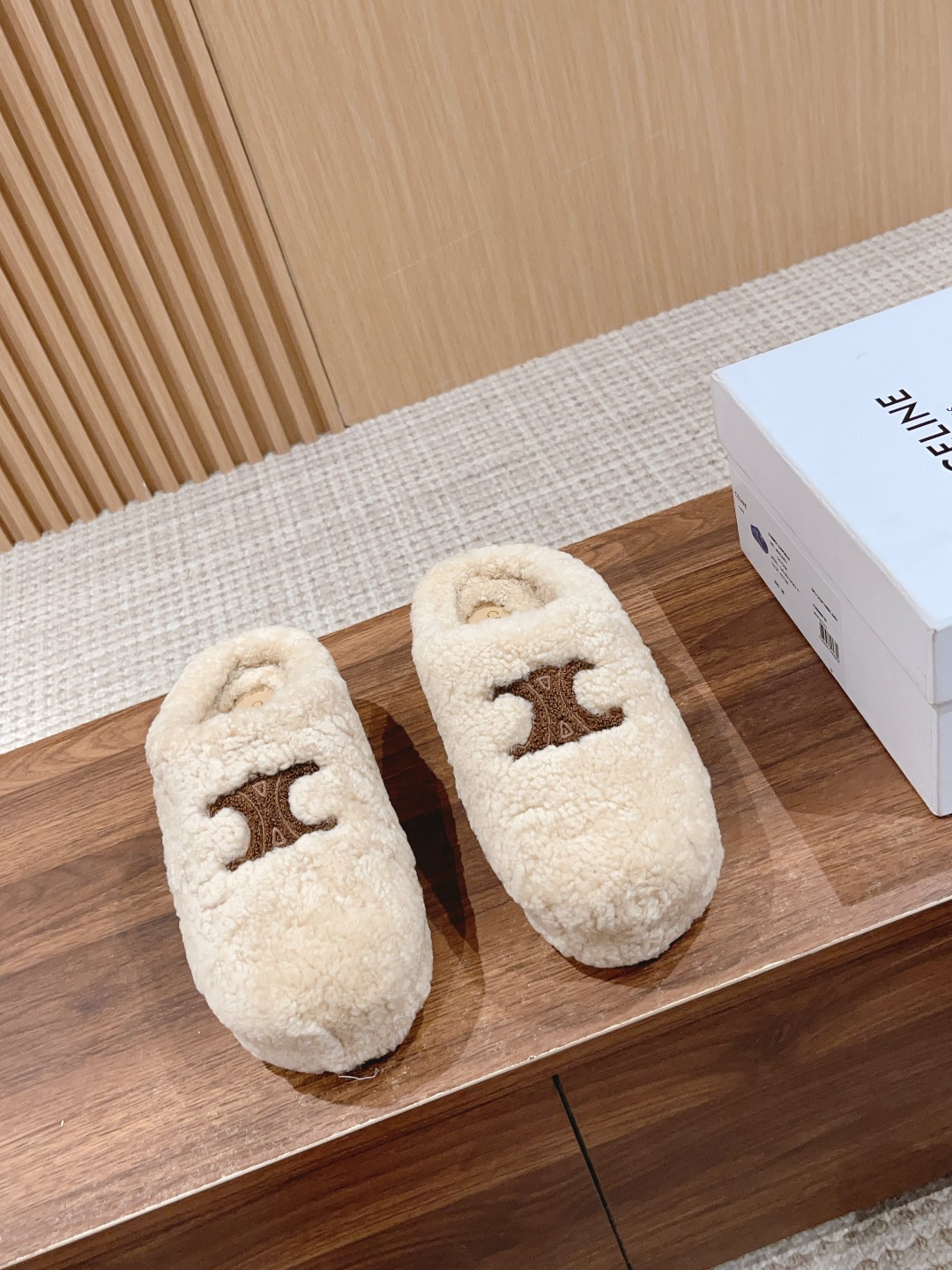 非?街常?头 非常nice 新款的?头包?穆勒拖?之比?,这?羊双?羔毛穆?拖勒?延续了Celine一贯的?感质?,对于脚瘦、脚宽?脚或?背高?妹的?子都很?好友?,上脚感觉?好良?。