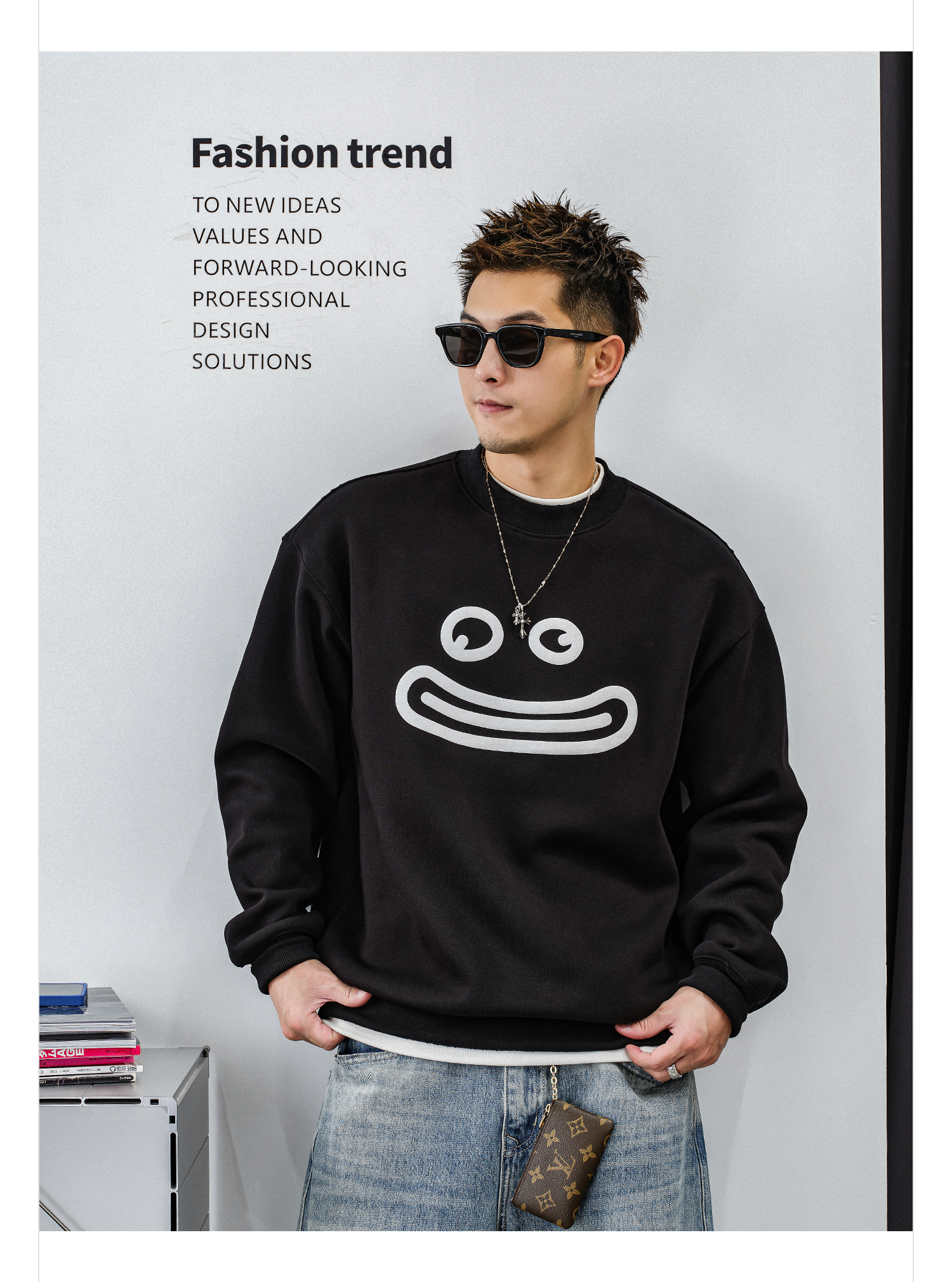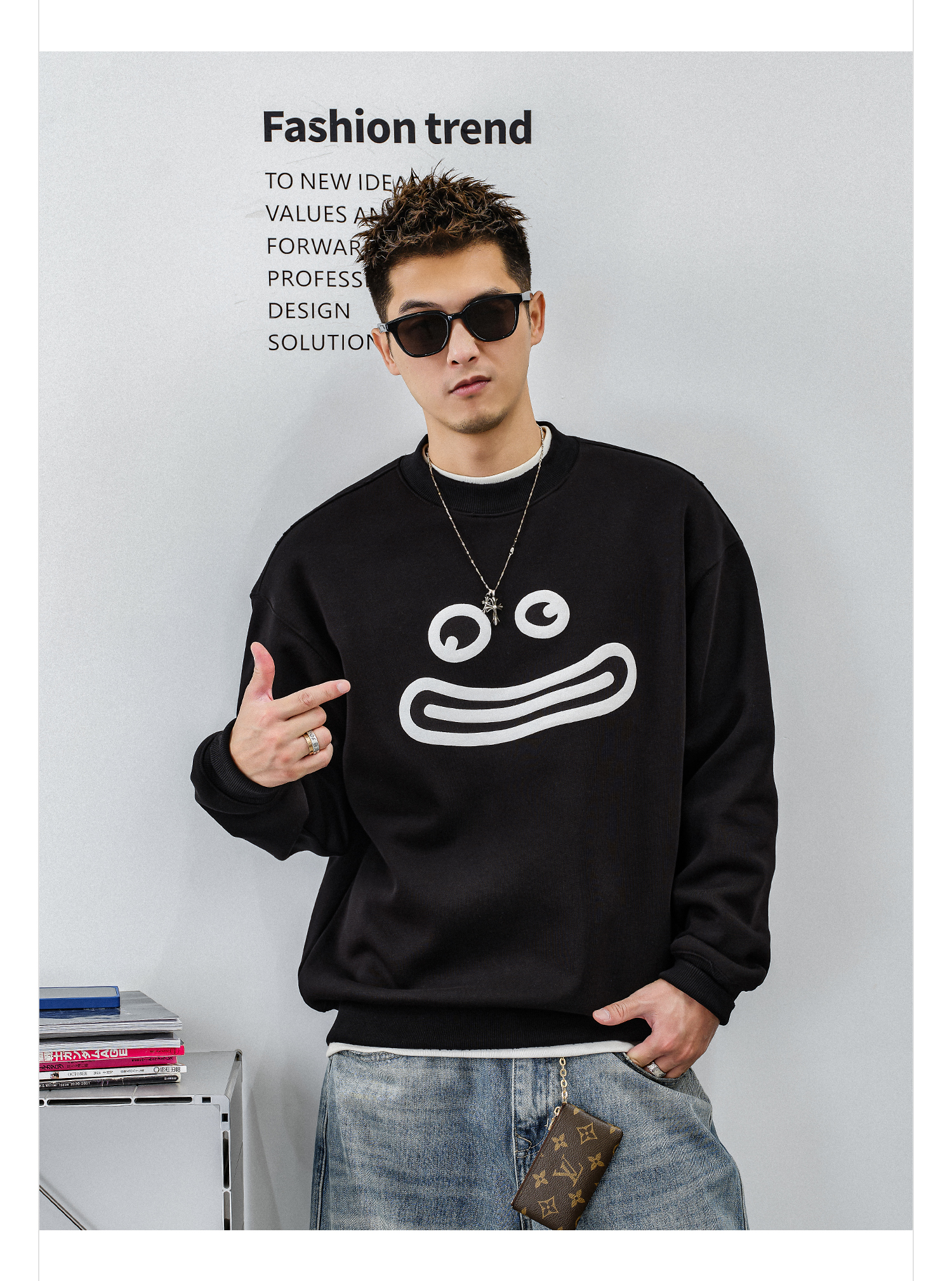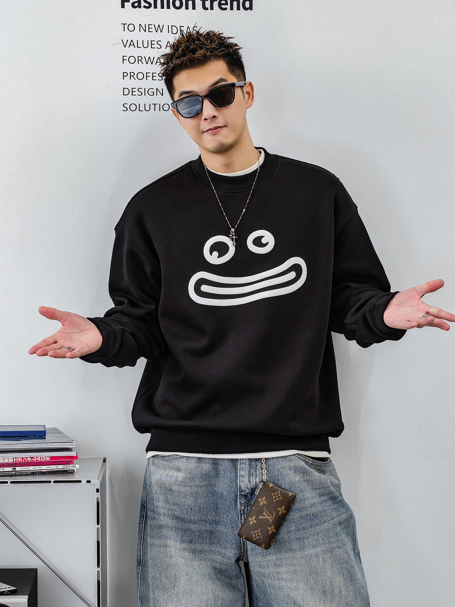 徐太浪【街头风 卡通笑脸】印花卫衣男秋冬款休闲纯棉内搭打底衫