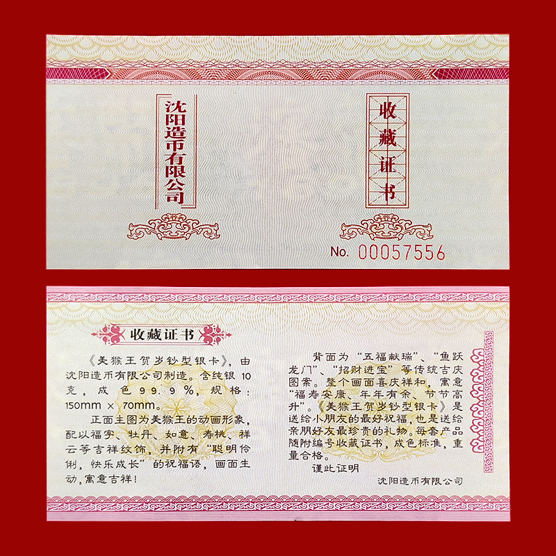 【沈阳造币】美猴王贺岁银卡 含纯银10克