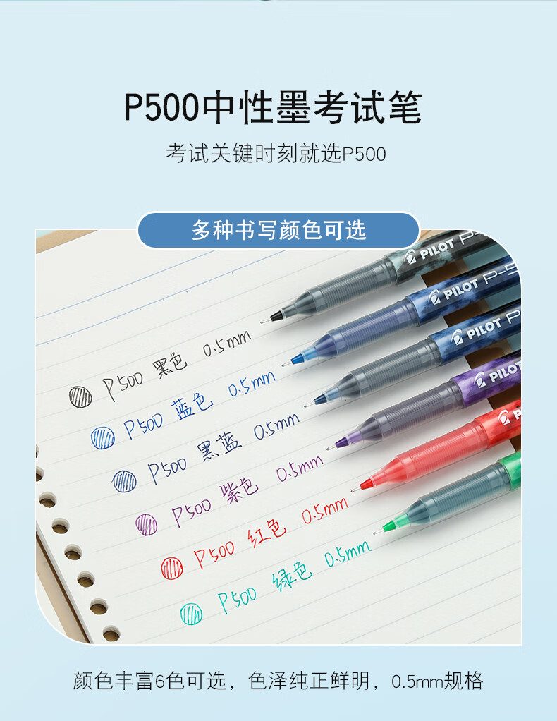 百乐(PILOT)P500中性笔水笔0.5直液式走珠笔