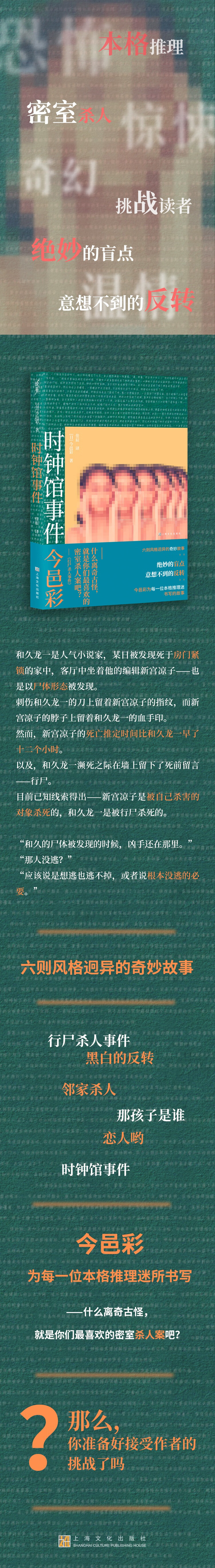 时钟馆事件(恐怖、惊悚、奇幻、温情今邑彩为本格推理迷书写的六则风格迥异的奇妙故事。)(日)今邑彩 著