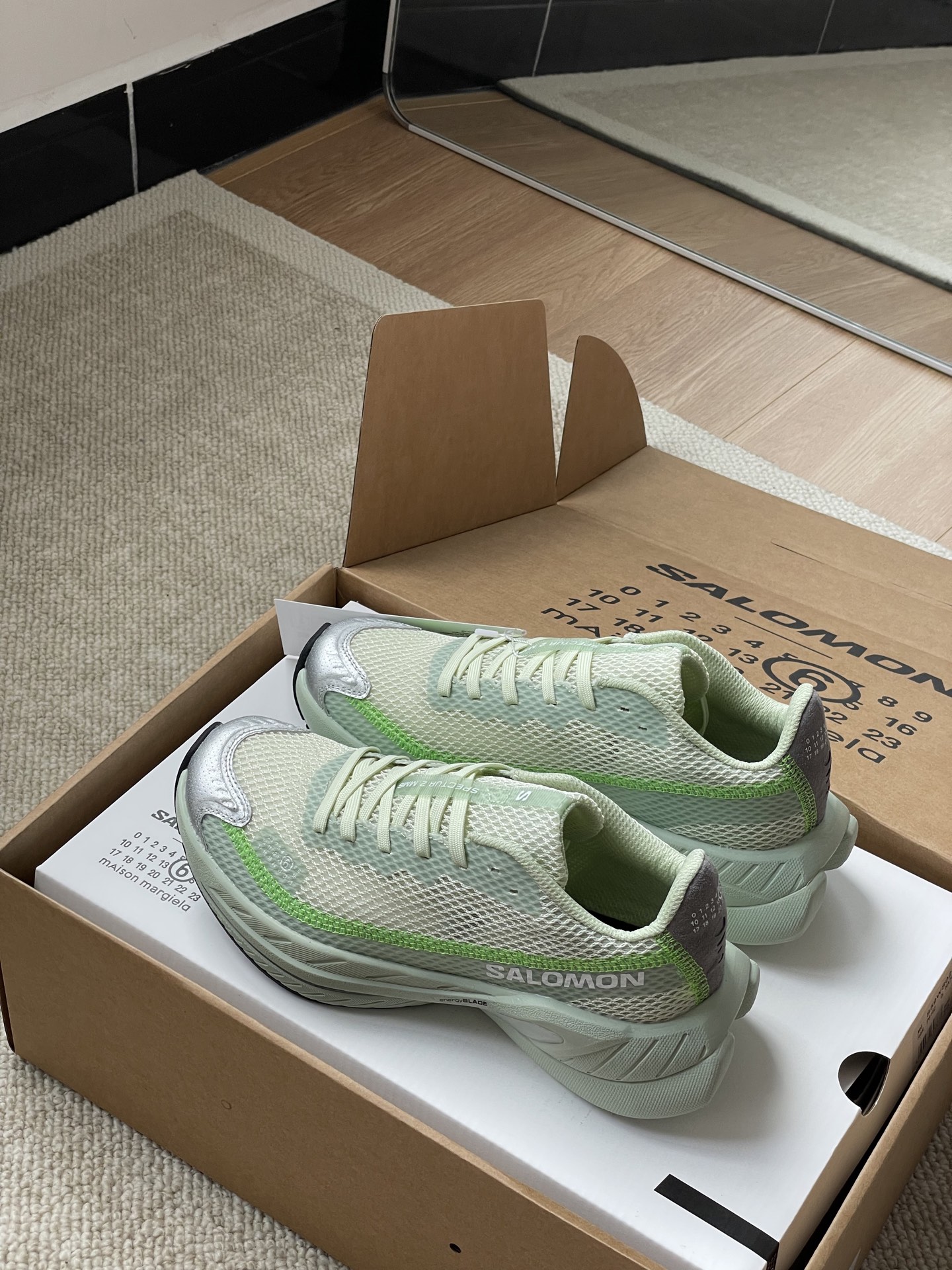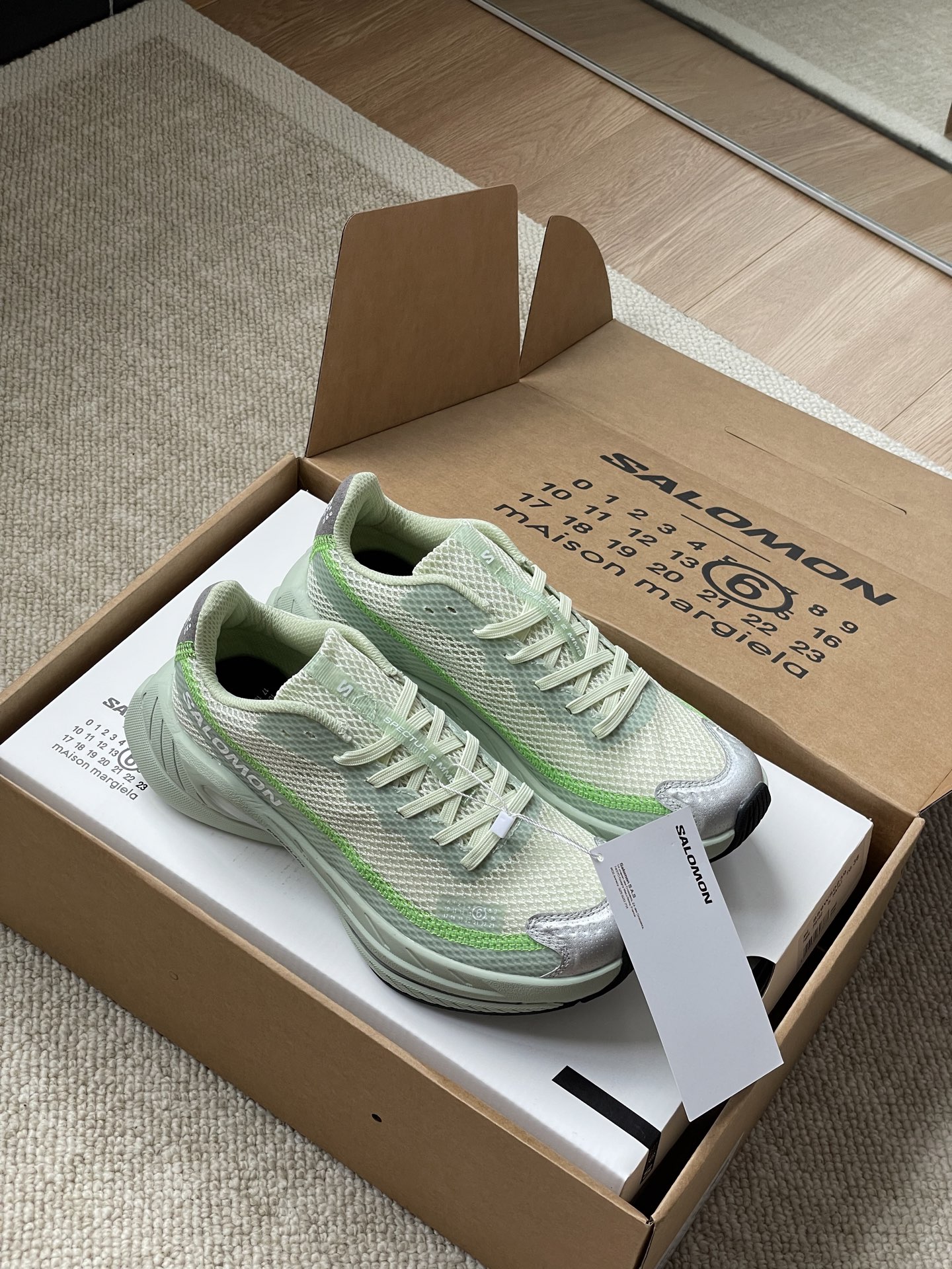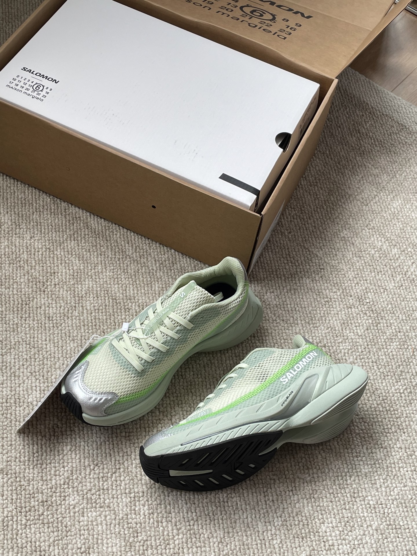 撒落新款TUR2 莞产版本,情侣款,运动鞋正码! SALOMON萨洛蒙SPECTUR 2 MM6 MAISON MARGIELA 舒适简约贴合低帮跑步鞋。 诠释MM6的前卫美学,鞋面采用大孔网眼材质搭配同色系压胶与裁片,鞋侧有双方品牌标识,搭载全长碳纤维板 Energy Blade与Energy Foam缓震系统,后掌加厚加宽,兼具推进力、缓震回弹与稳定性。 码数:女码35,36,37,38,39,40。 男码:40,41,42,43,44,45。