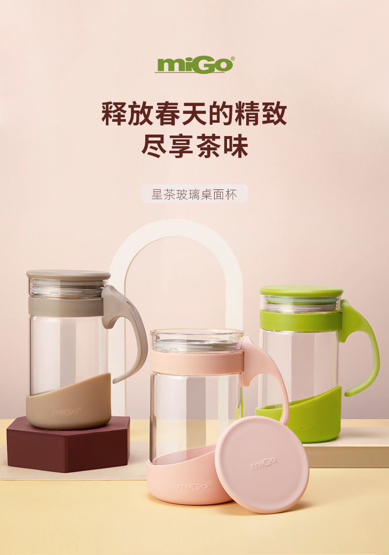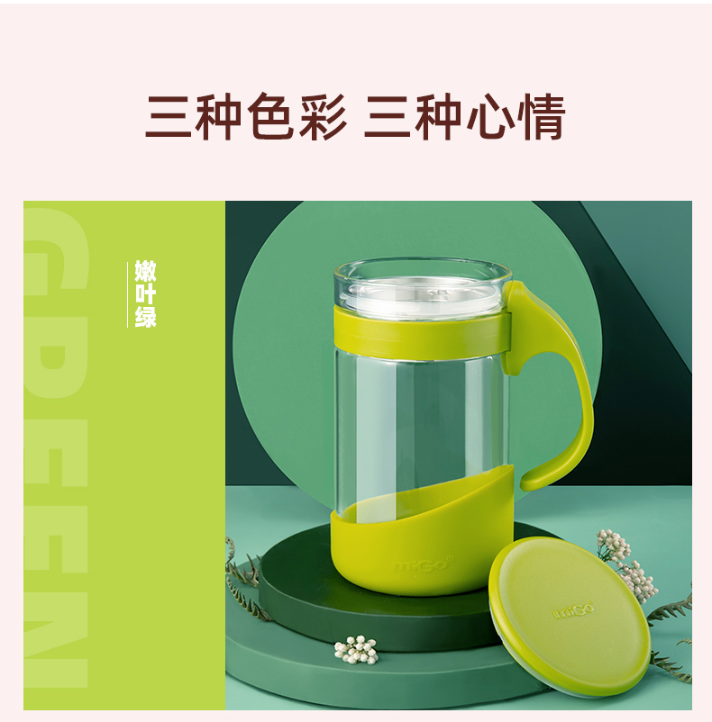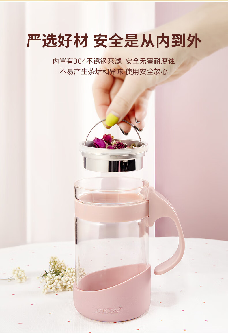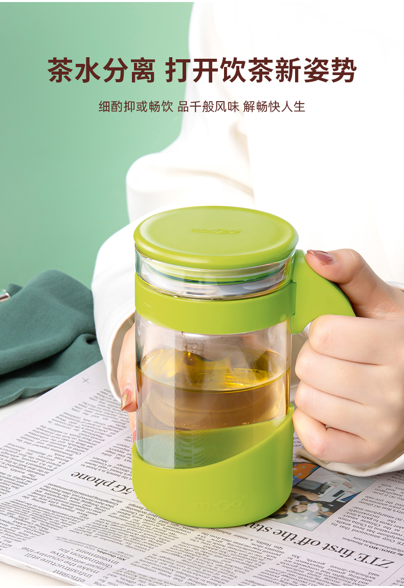 miGo 玻璃泡茶杯女士茶水分离杯防摔耐热家用办公室带盖杯子带把茶杯 星茶·玻璃桌面杯