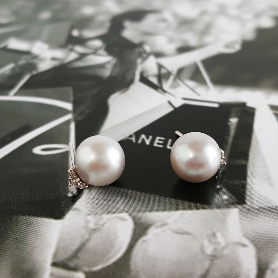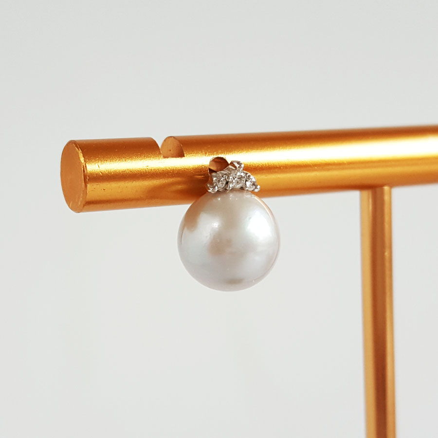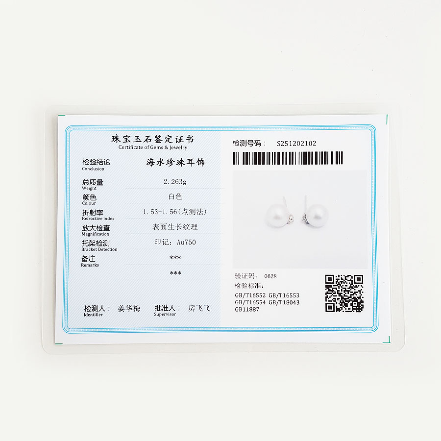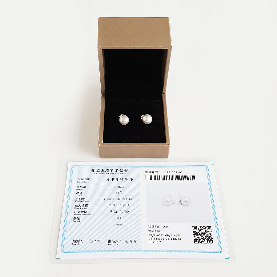 名称 | AU750白金镶钻镶天然近完美约8.6MM真多麻海水珍珠耳钉 |