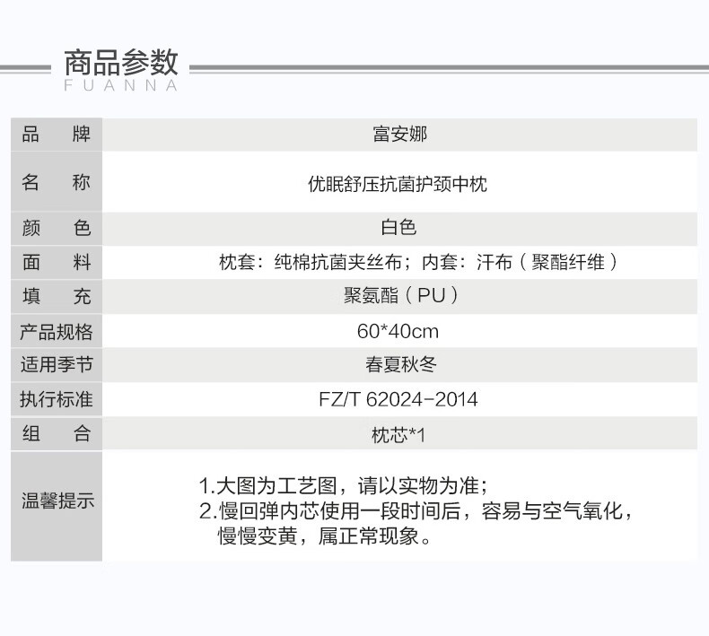 富安娜(FUANNA)优眠舒压抗菌护颈中枕头 60*40cm