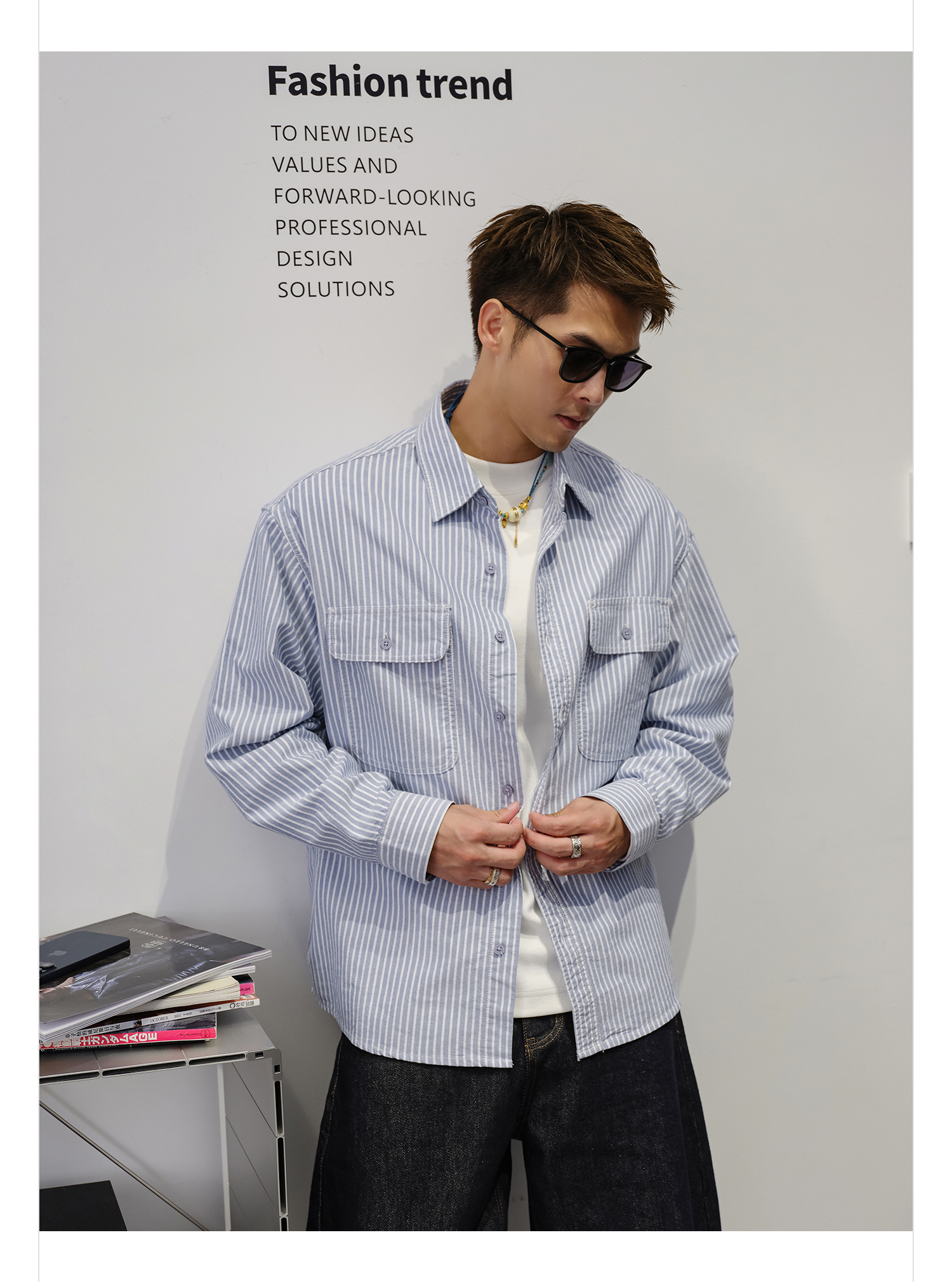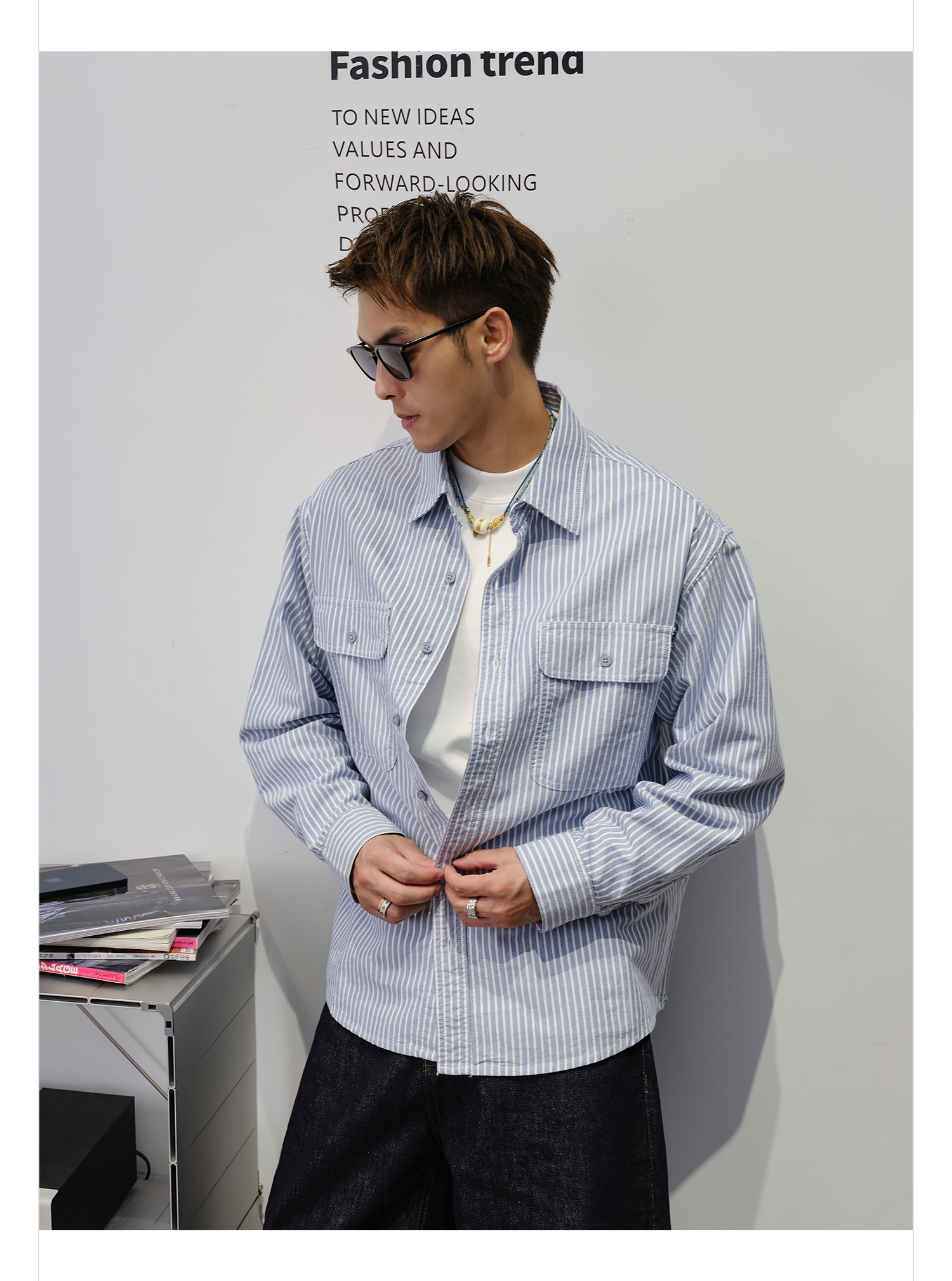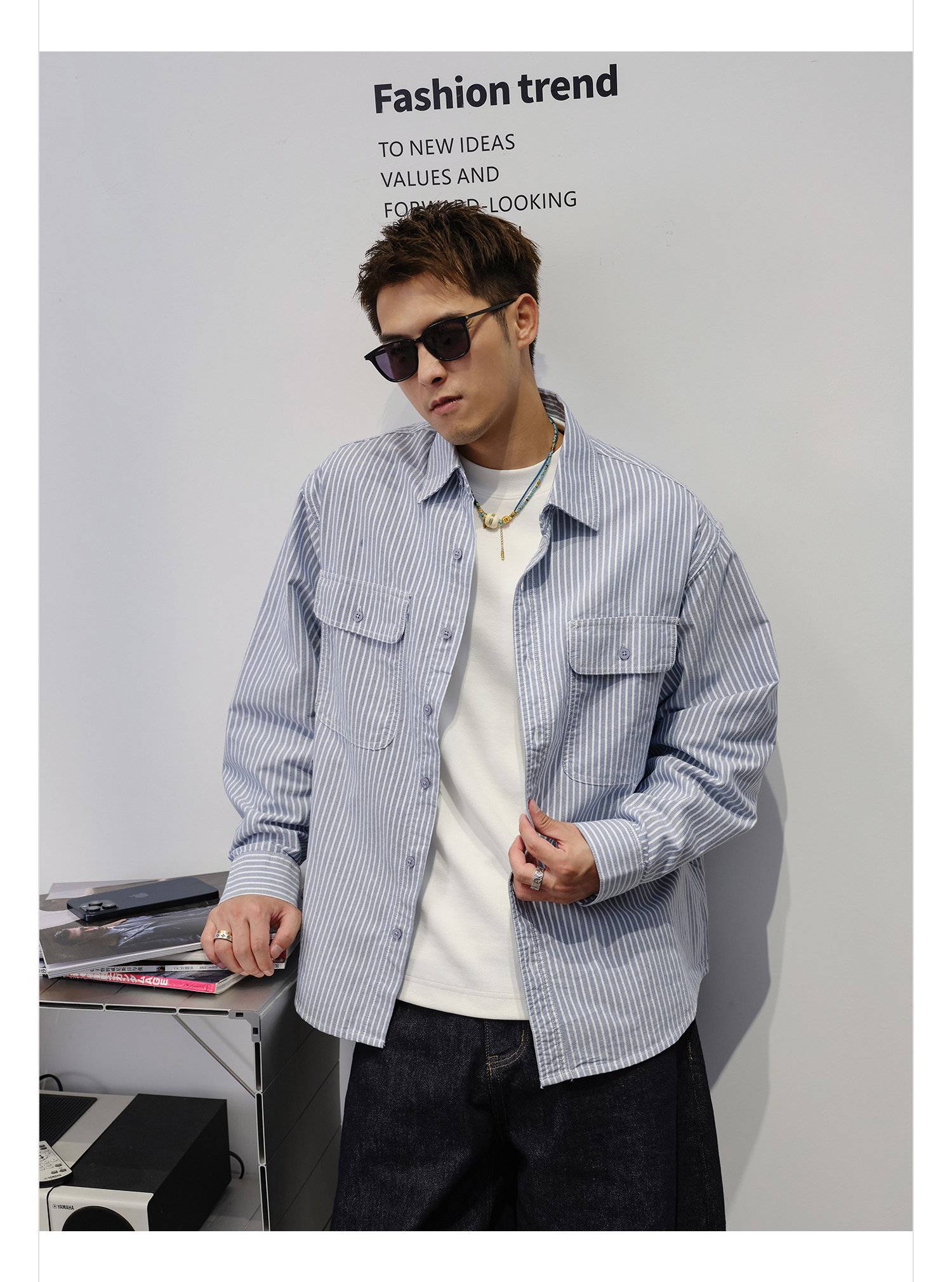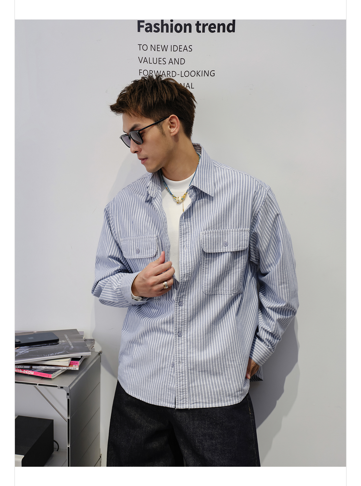 徐太浪【时尚条纹 175g纯棉】大码长袖衬衫男春秋高级感休闲衬衣
