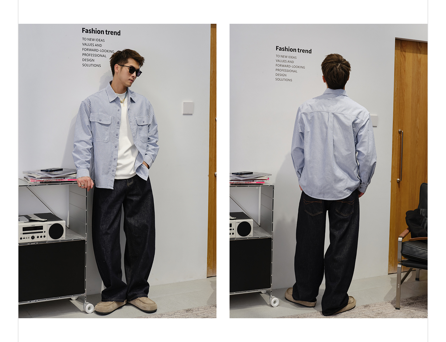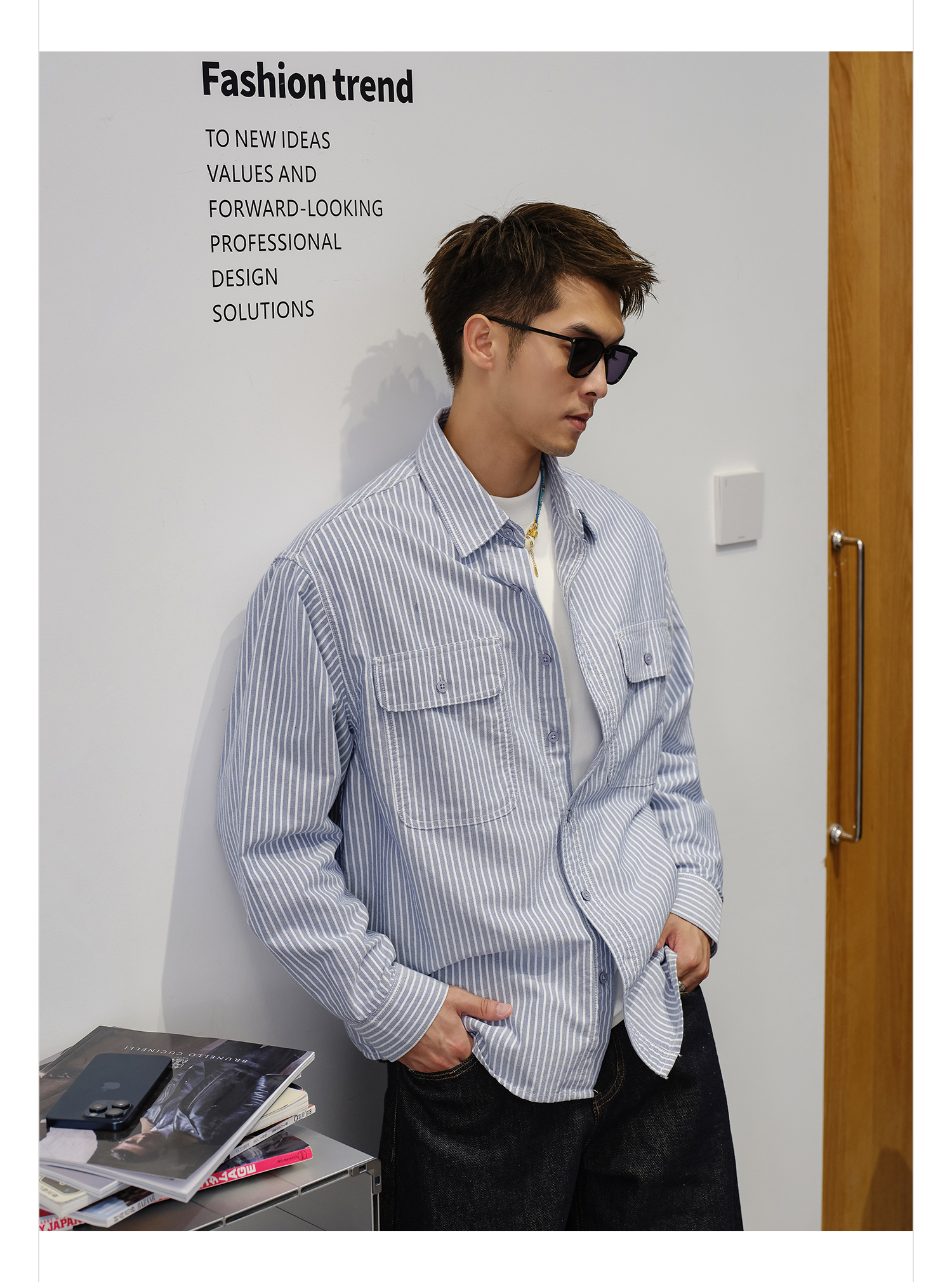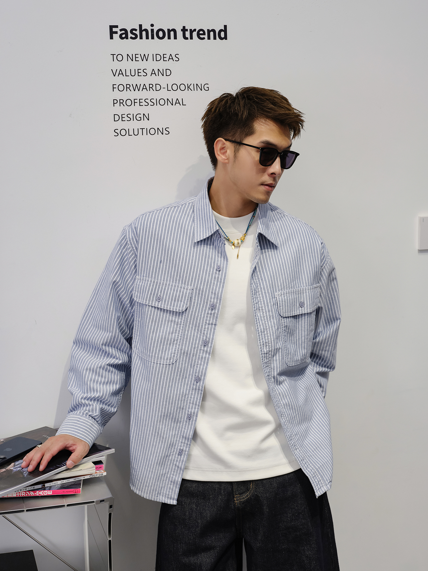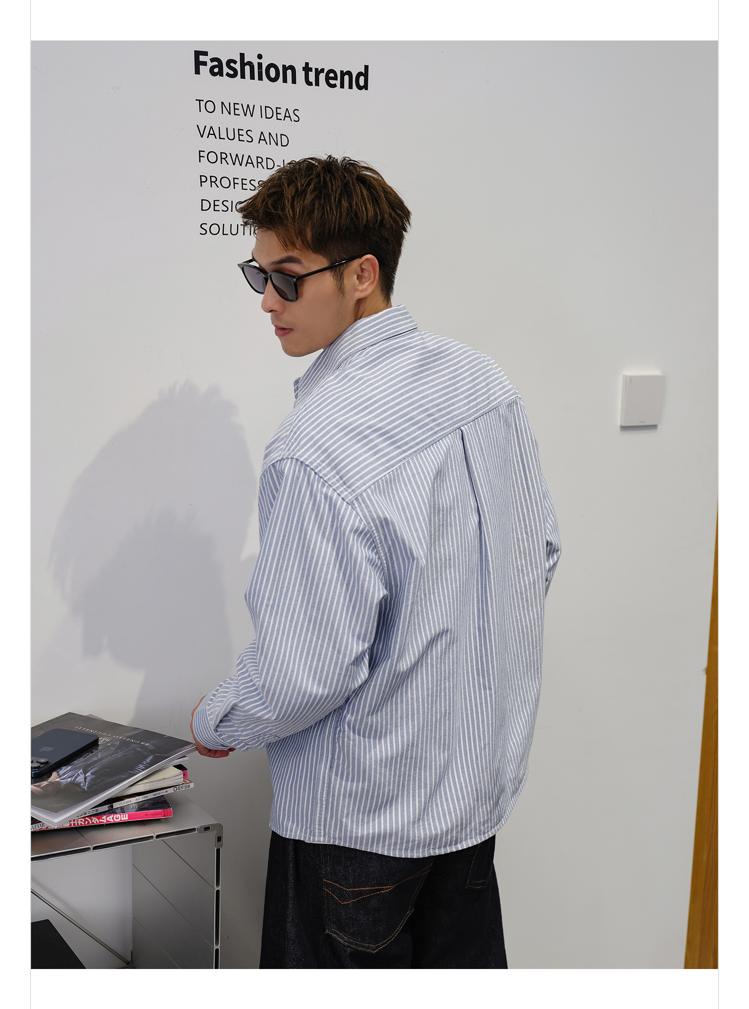 徐太浪【时尚条纹 175g纯棉】大码长袖衬衫男春秋高级感休闲衬衣