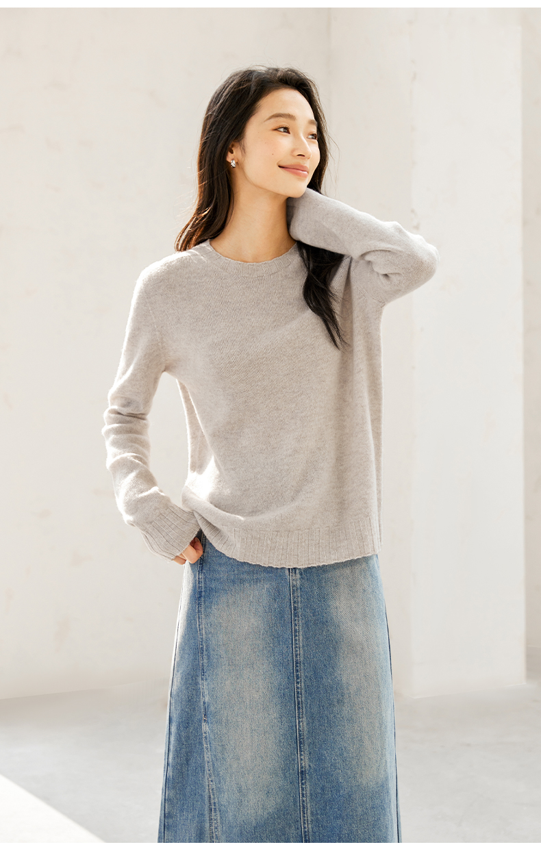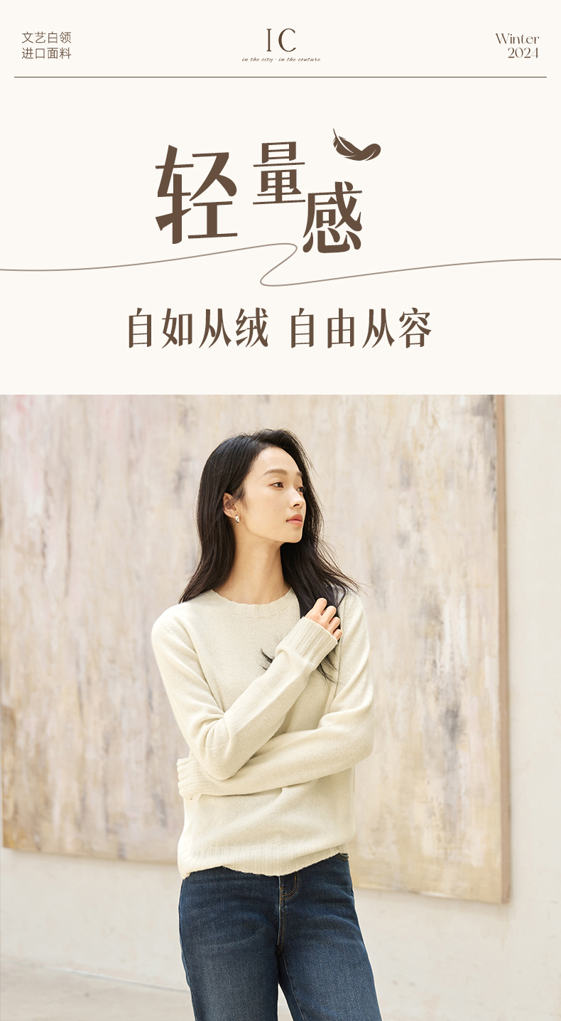 IC【100%绵羊毛】肌理感宽松打底针织衫女新款秋冬气质羊毛衫长袖上衣