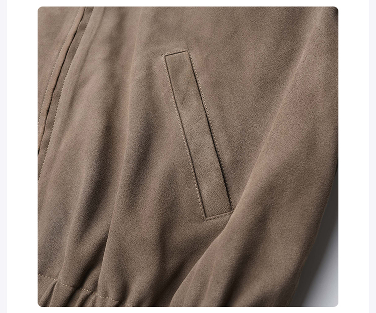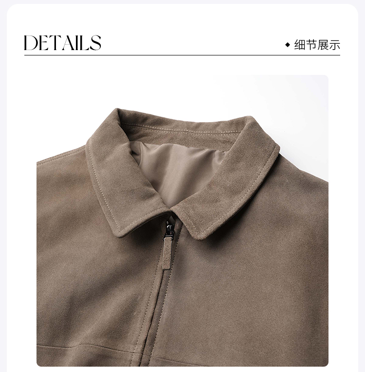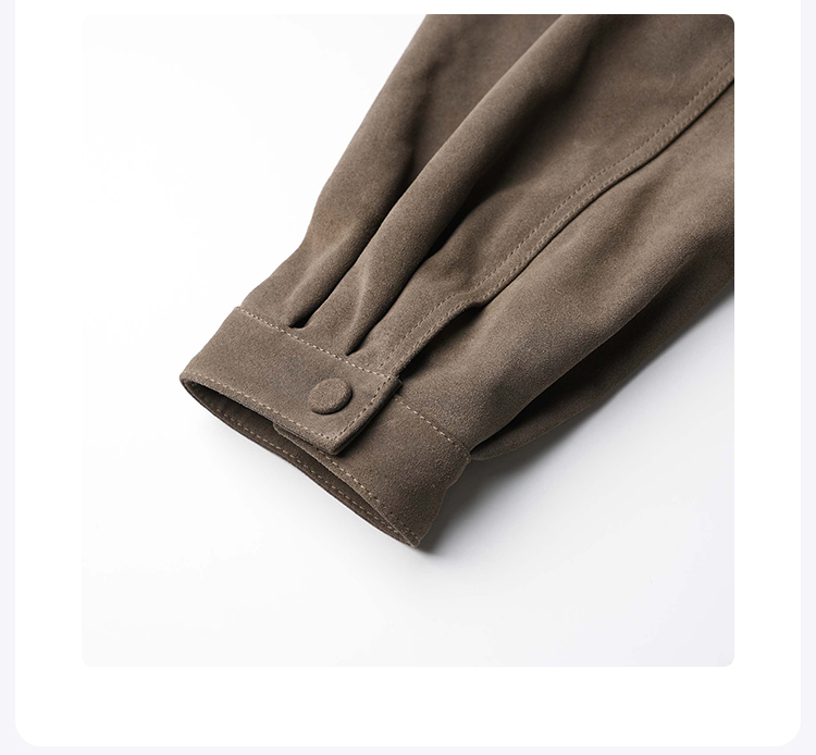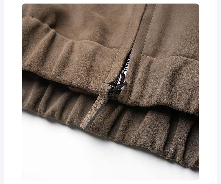 ROMI STUDIO“棕标甄选”进口小牛反绒皮立领收腰宽松皮衣 441P6028