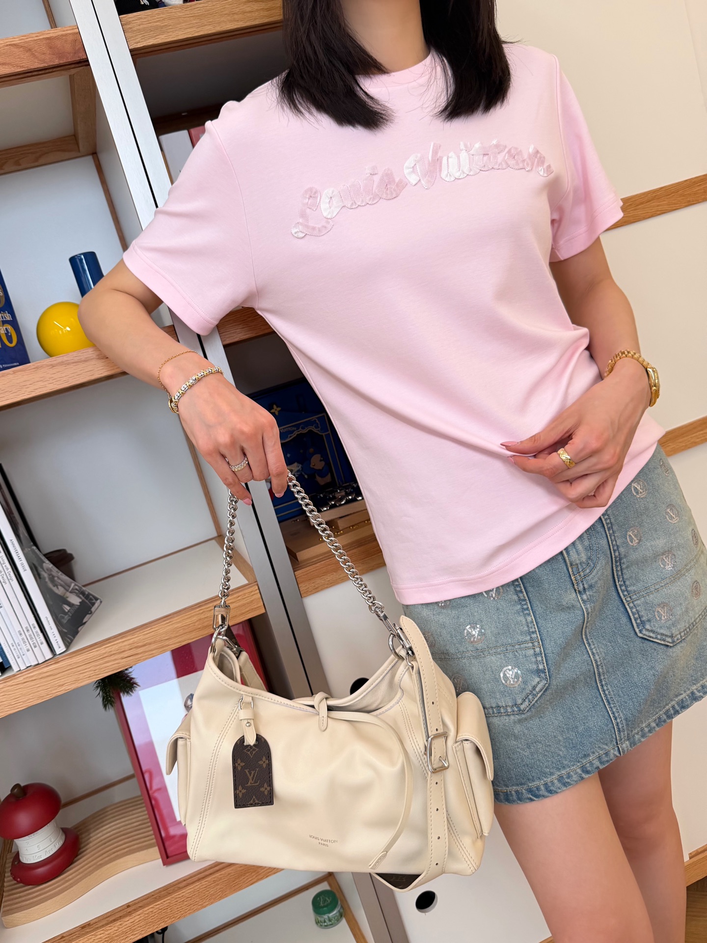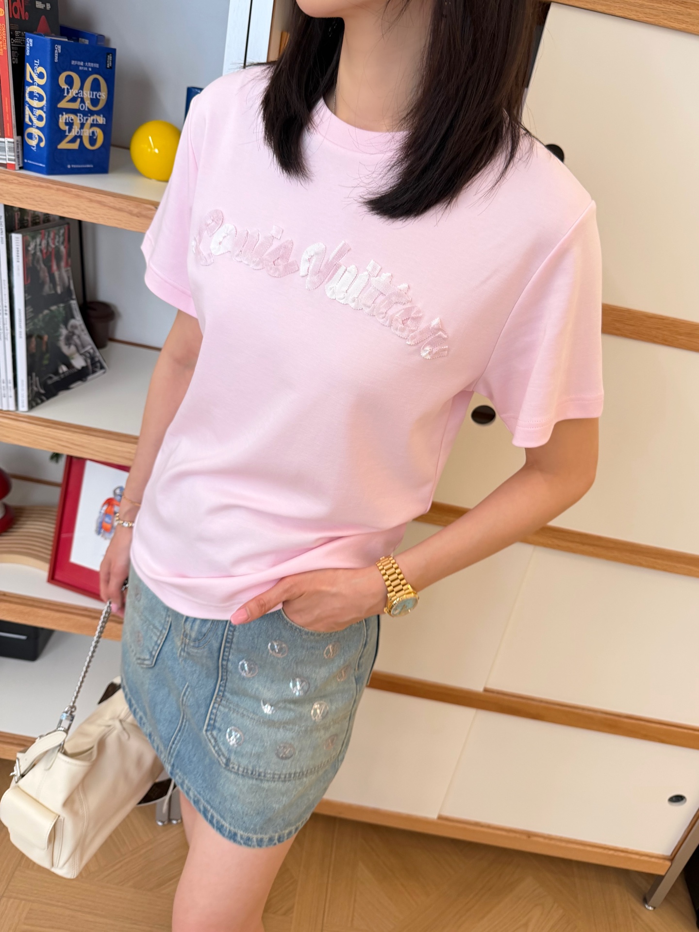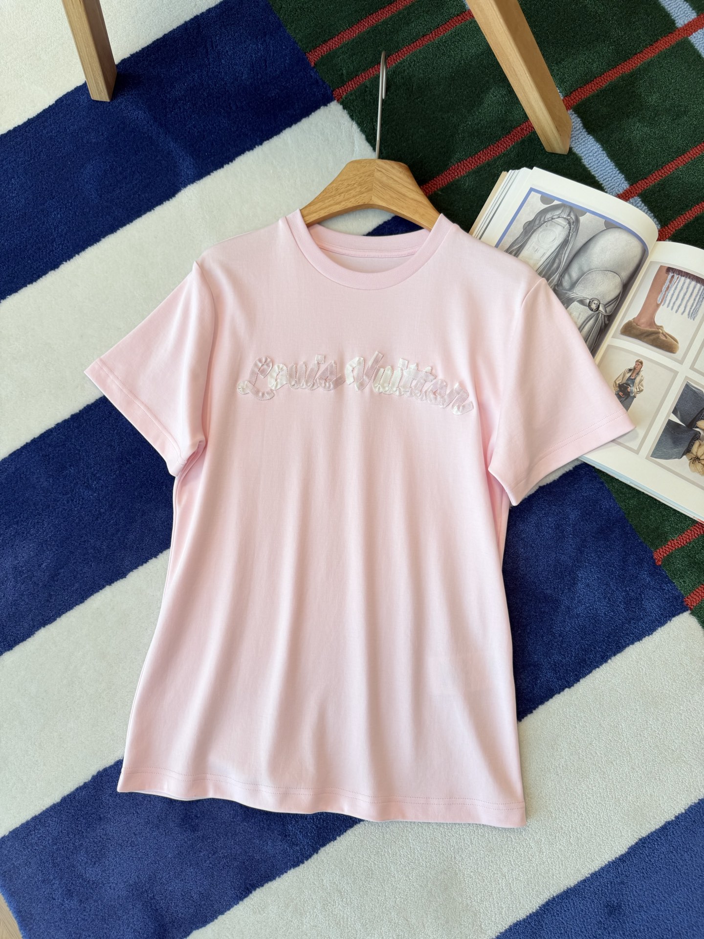 以其优质的面料、舒适的触感、精致的工艺和百搭的设计,成为了衣柜中不可或缺的一款单品☑️胸前采用贴布绣立体字母工艺,层次丰富更显精致🔝基础修身的版型🤩适合各种体型的人群穿着🎉无论是喜欢温柔甜酷风格的你,还是追求简约高级感的你,都能在这款T恤中找到属于你的那份风格💗日常通勤、休闲出街都适配✨灰/粉两个色,码数SML