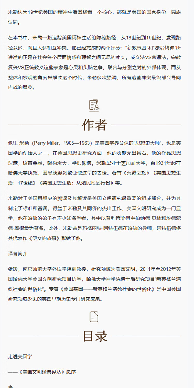 《无尽的纷争:从独立革命到内战的美国思想史》(美)佩里·米勒 著 钱满素 主编