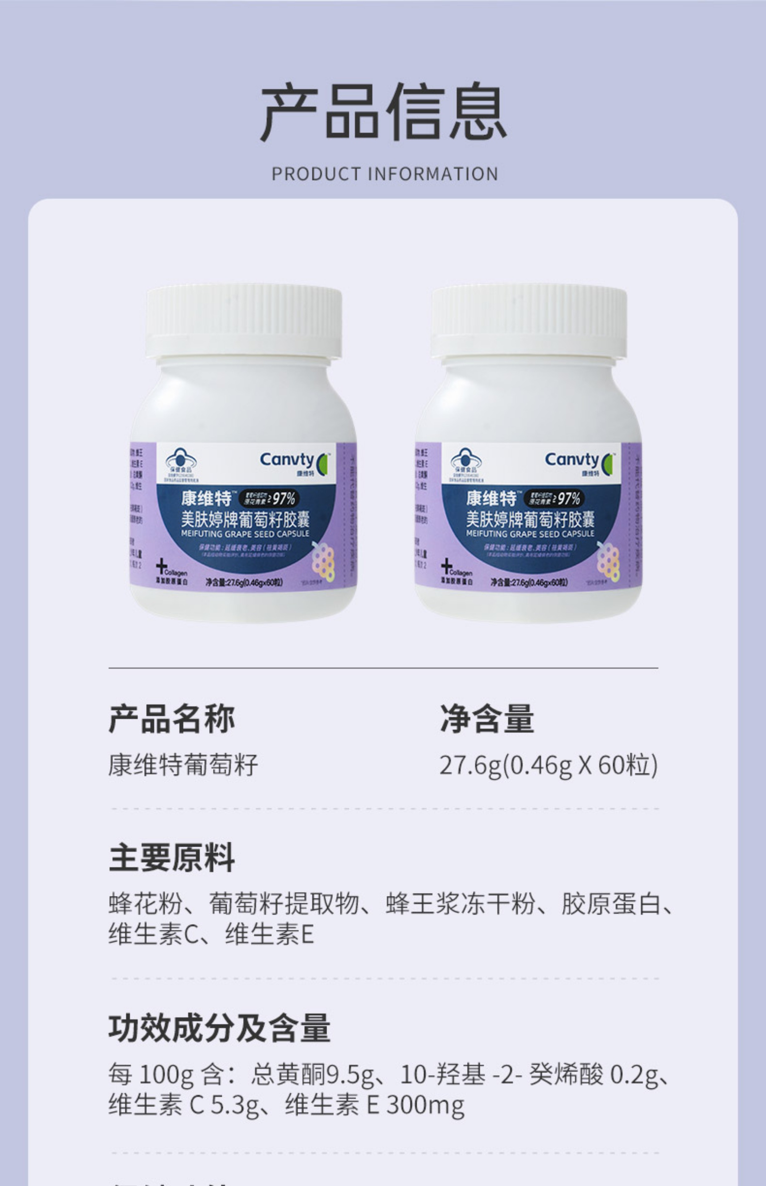 Canvty康维特 简妙丽葡萄籽 尚维麦葡萄籽 原花青素祛斑抗衰