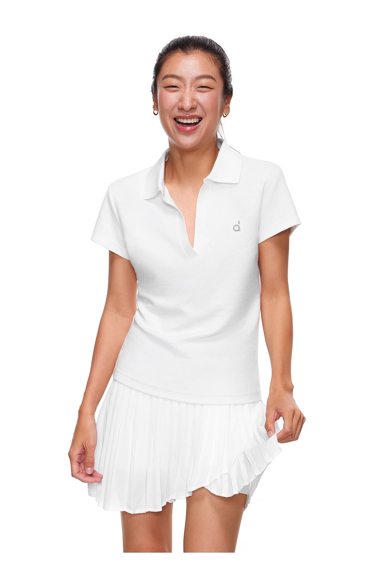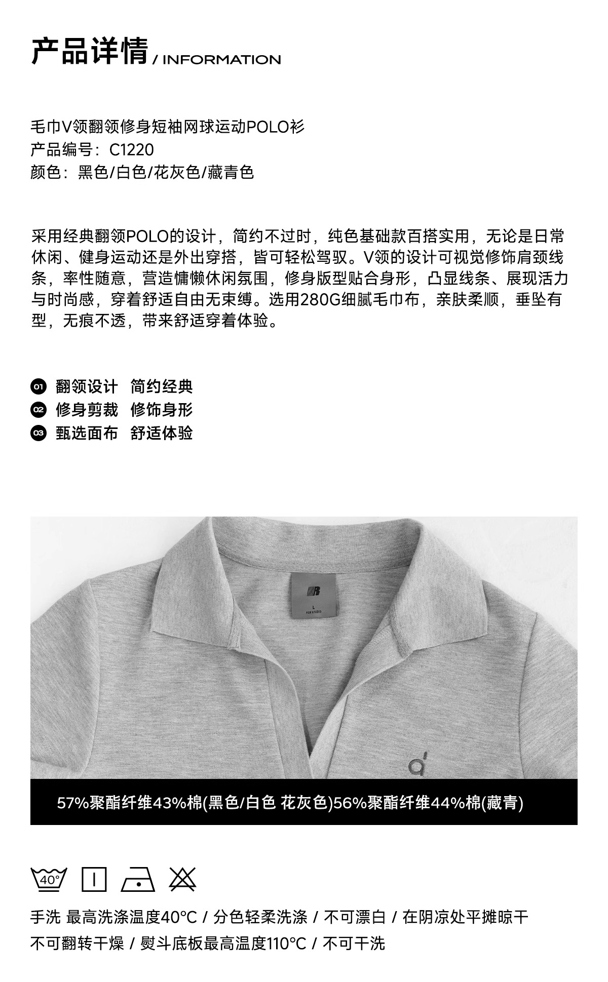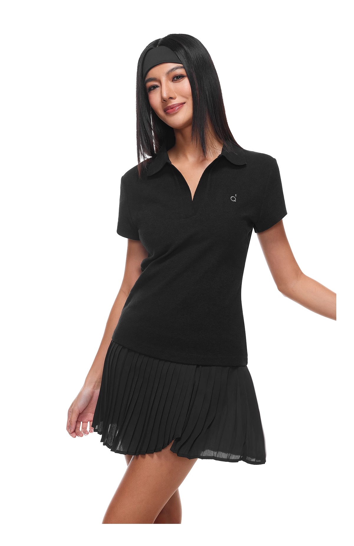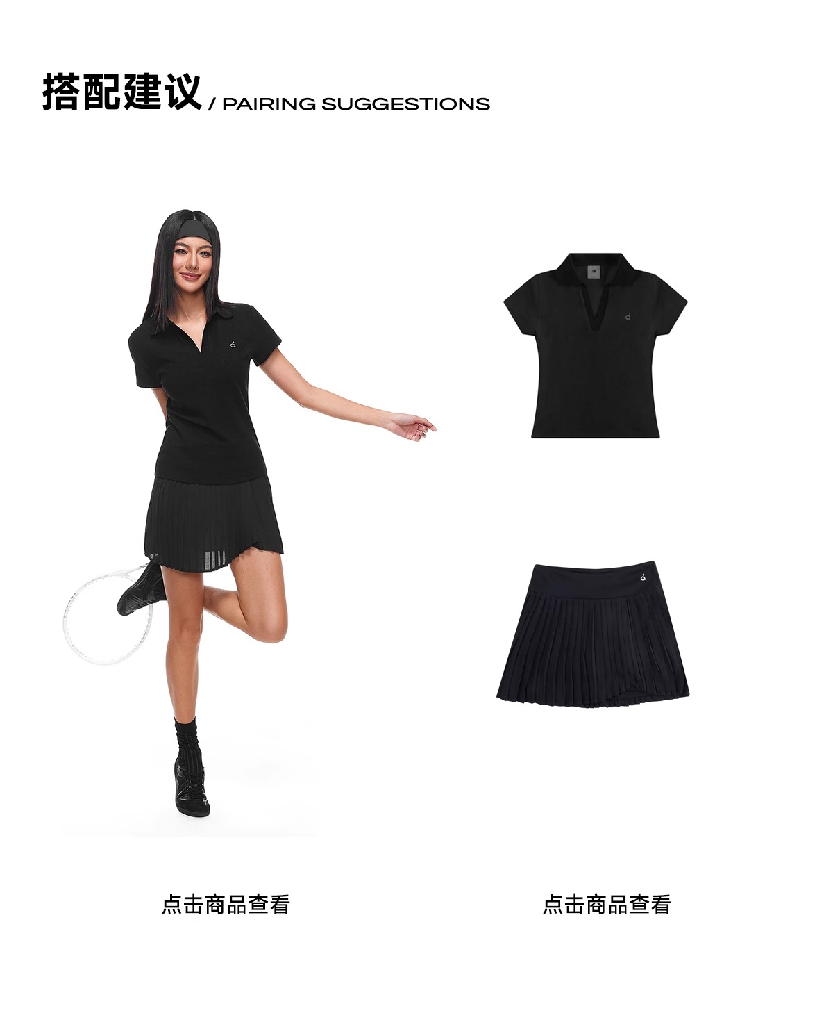 FDR旗舰店 V领正肩polo衫短袖t恤女修身翻领羽毛球运动上衣网球服