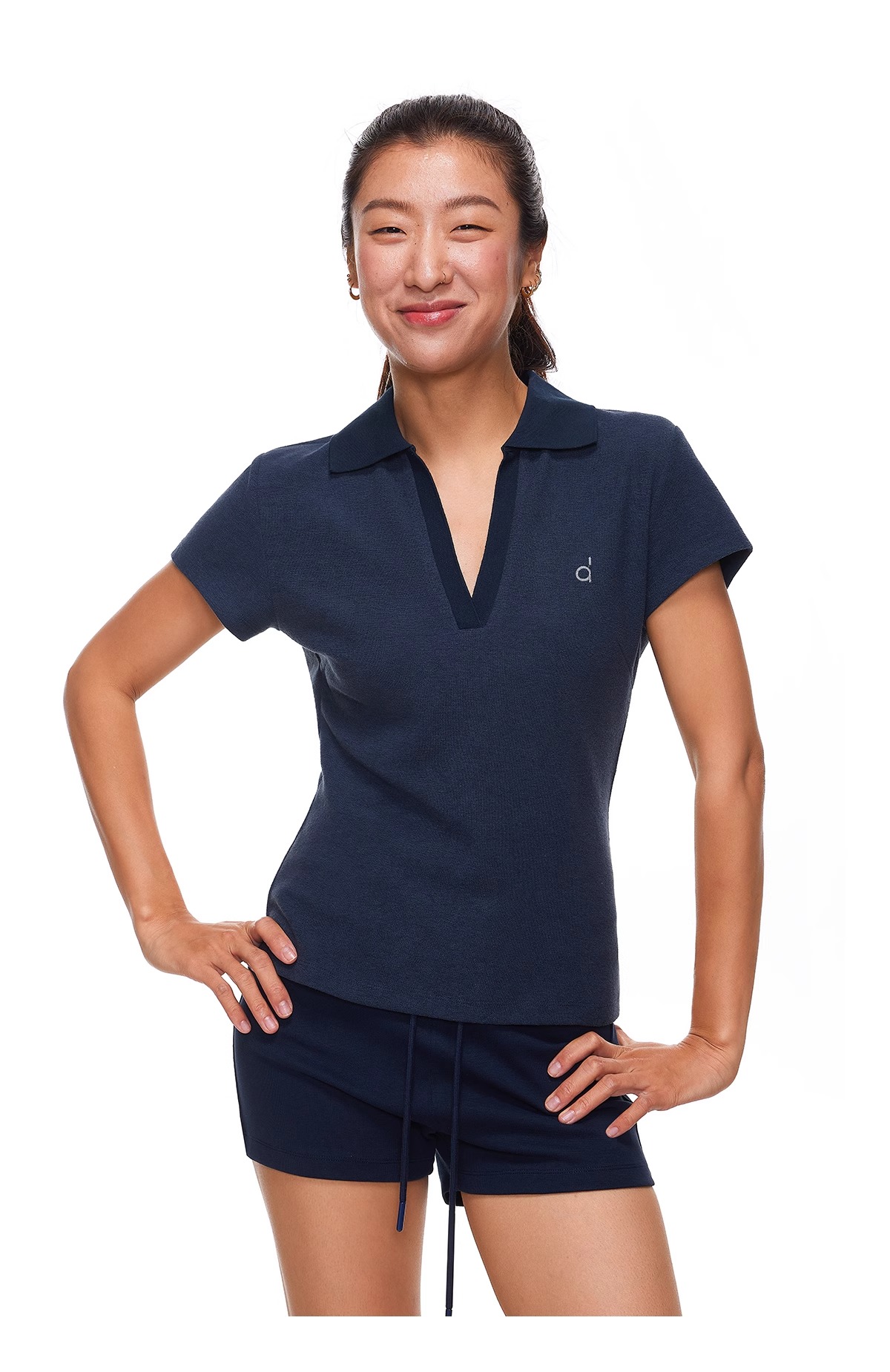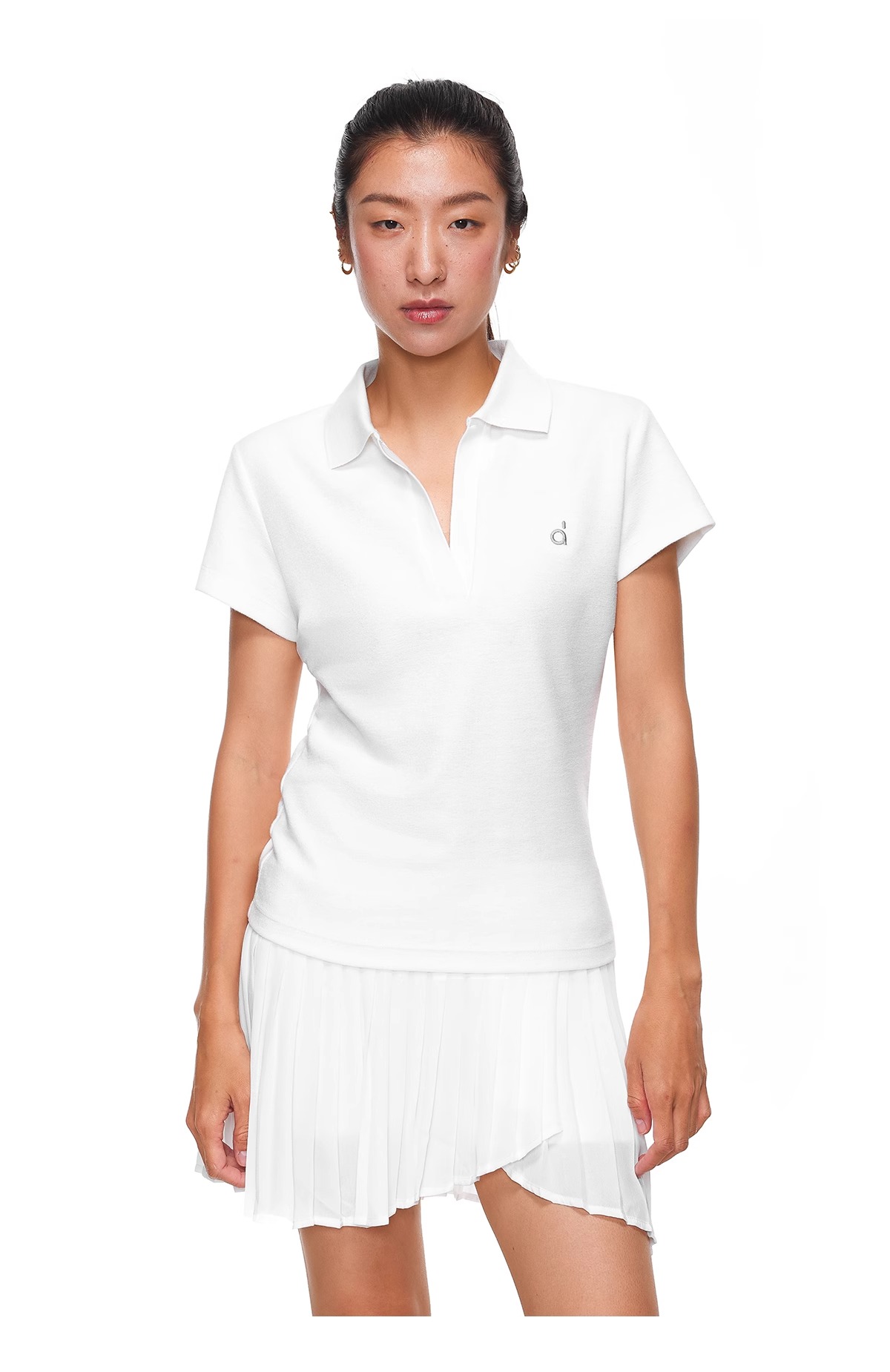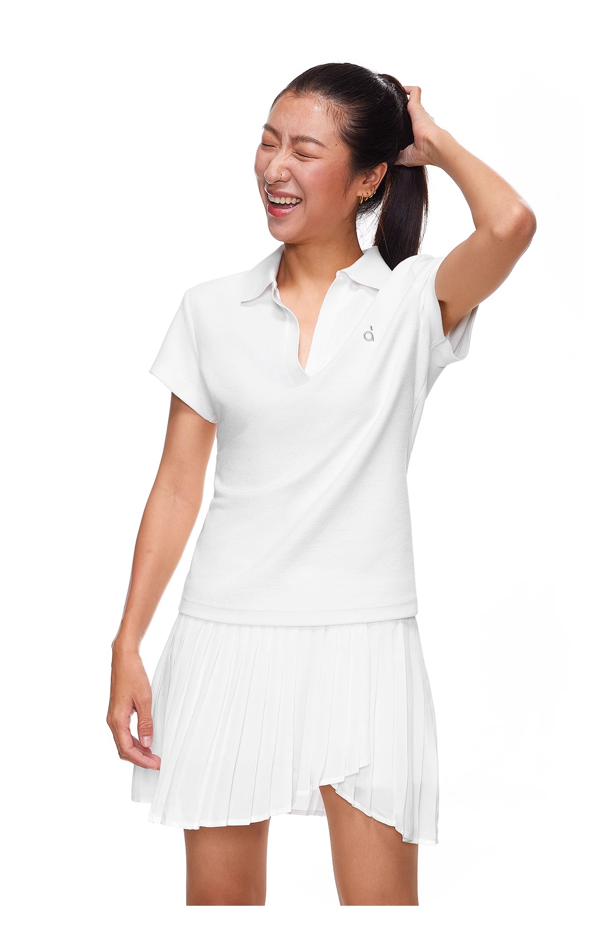 FDR旗舰店 V领正肩polo衫短袖t恤女修身翻领羽毛球运动上衣网球服